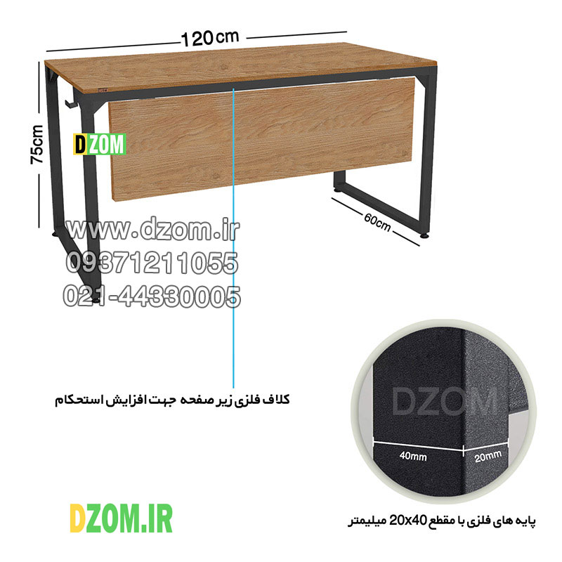 میز تحریر دیزم DZOM مدل مونتاژی WD_front_120×60_LIGHT محصولی مونتاژی، سبک، شیک و در عین حال جذاب و کارآمد از سری تولیدات دیزم میباشد. این محصول بصورت سلف اسمبل (مونتاژی) تولید شده است. این میز حمل و نقل آسان و هزینه حمل مقرون به صرفه ای دارد. مشتری گرامی توجه نمایید برند دیزم (شماره ثبت 414013 اداره ثبت علائم تجاری) هیچگونه نمایندگی فروش در بازارهای فیزیکی و آنلاین نداشته و محصولات خود را با کیفیت و بسته بندی اصلی، مستقیما از طریق سایت Dzom.ir یا شبکه های اجتماعی خود به مصرف کننده (End User) عرضه می نماید. لطفا از خرید کالای تقلبی از سایر فروشندگان خودداری فرمایید. این میز از پایه های فلزی با مقطع 20×40 میلیمتر و رنگ رویه الکترواستاتیک با ماندگاری و دوام بالا ساخته شده است. همچنین پایه های پیچی، قابلیت تنظیم نسبت به سطح زمین را دارد تا بهترین تراز جهت جلوگیری از تکان خوردن را ایجاد نماید. صفحه میز از جنس MDF درجه یک برجسته طرح چوب به رنگ قهوه ای روشن می باشد. این محصول با طول 120cm، عرض 60cm و ارتفاع 75cm عرضه می شود. به این نکته توجه شود که تنوع رنگ انتخابی کالا تنها مربوط به رنگ پایه های فلزی میباشد.