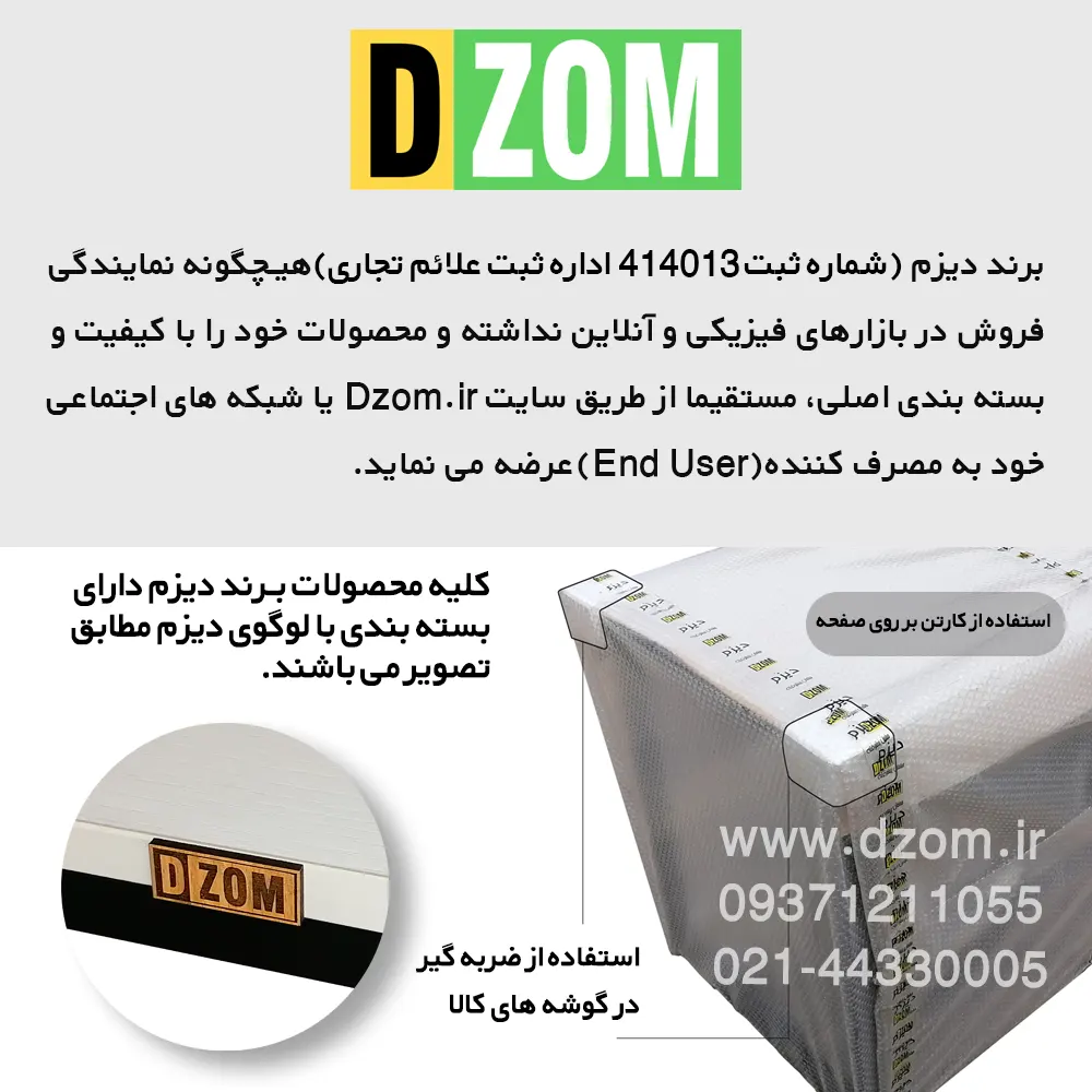 میز تحریر دیزم DZom مدل WD_Q100_90_W محصولی سبک، شیک و در عین حال جذاب و کارآمد از سری تولیدات دیزم میباشد. مشتری گرامی توجه نمایید برند دیزم (شماره ثبت 414013 اداره ثبت علائم تجاری) هیچگونه نمایندگی فروش در بازارهای فیزیکی و آنلاین نداشته و محصولات خود را با کیفیت و بسته بندی اصلی، مستقیما از طریق سایت Dzom.ir یا شبکه های اجتماعی خود به مصرف کننده (End User) عرضه می نماید. لطفا از خرید کالای تقلبی از سایر فروشندگان خودداری فرمایید. این محصول از پایه های فلزی با مقطع 20×20 میلیمتر و رنگ رویه الکترواستاتیک با ماندگاری و دوام بالا ساخته شده است. همچنین پایه های پیچی، قابلیت تنظیم نسبت به سطح زمین را دارد تا بهترین تراز جهت جلوگیری از تکان خوردن را ایجاد نماید. صفحه محصول از جنس MDF درجه یک برجسته طرح چوب و به رنگ سفید می باشد. این محصول با طول 90cm، عرض 60cm و ارتفاع 85cm عرضه می شود. به این نکته توجه شود که تنوع رنگ انتخابی کالا تنها مربوط به رنگ پایه های فلزی میباشد و محصول به صورت کاملا مونتاژ شده و آماده استفاده برای مشتریان ارسال می گردد.