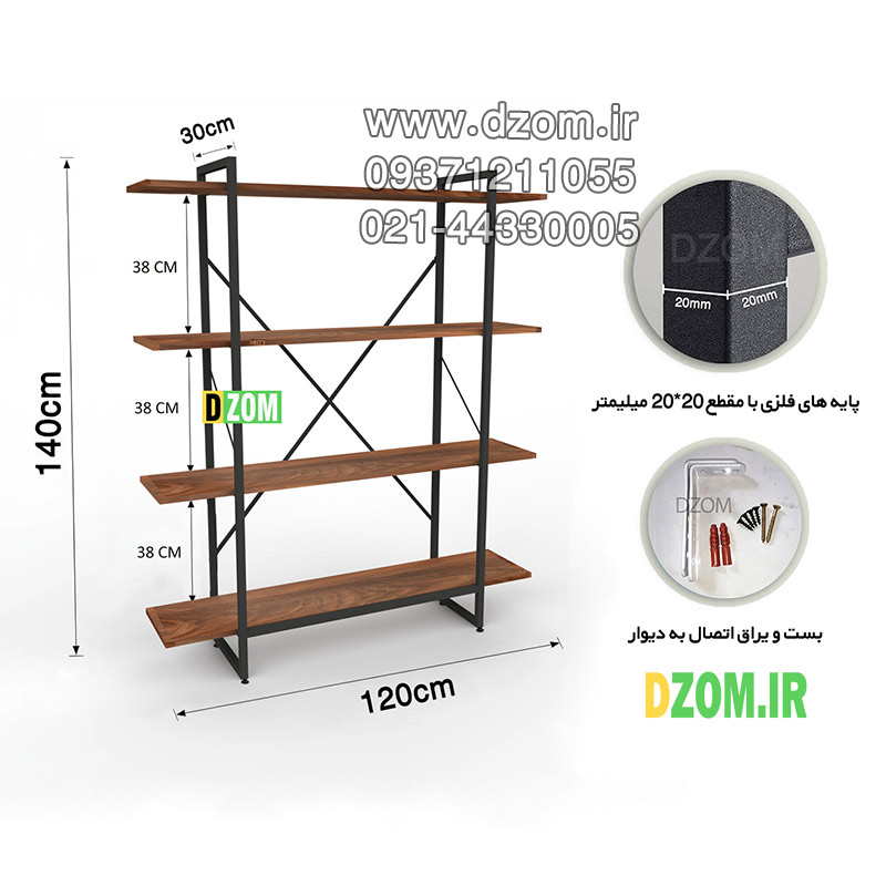 شلف ایستاده دیزم DZom مدل مونتاژی SLF_120×140_BRN محصولی مونتاژی، سبک، شیک و در عین حال جذاب و کارآمد از سری تولیدات دیزم میباشد. مشتری گرامی توجه نمایید برند دیزم (شماره ثبت 414013 اداره ثبت علائم تجاری) هیچگونه نمایندگی فروش در بازارهای فیزیکی و آنلاین نداشته و محصولات خود را با کیفیت و بسته بندی اصلی، مستقیما از طریق سایت Dzom.ir یا شبکه های اجتماعی خود به مصرف کننده (End User) عرضه می نماید. لطفا از خرید کالای تقلبی از سایر فروشندگان خودداری فرمایید. این محصول بصورت سلف اسمبل (مونتاژی) تولید شده است. این شلف حمل و نقل آسان و هزینه حمل مقرون به صرفه ای دارد. از پایه های فلزی با مقطع 20×20 میلیمتر و رنگ رویه الکترواستاتیک با ماندگاری و دوام بالا ساخته شده است. همچنین پایه های پیچی، قابلیت تنظیم نسبت به سطح زمین را دارد تا بهترین تراز جهت جلوگیری از تکان خوردن را ایجاد نماید. صفحات شلف از جنس MDF درجه یک برجسته طرح چوب به رنگ قهوه ای می باشد. این محصول با طول 120cm، عرض 30cm و ارتفاع 140cm عرضه می شود. به این نکته توجه شود که تنوع رنگ انتخابی کالا تنها مربوط به رنگ پایه های فلزی میباشد. توصیه میشود جهت حفظ ایمنی و ثبات بیشتر، محصول در یک یا دو نقطه به دیوار پیچ گردد.(یراق اتصال داخل بسته بندی موجود است).