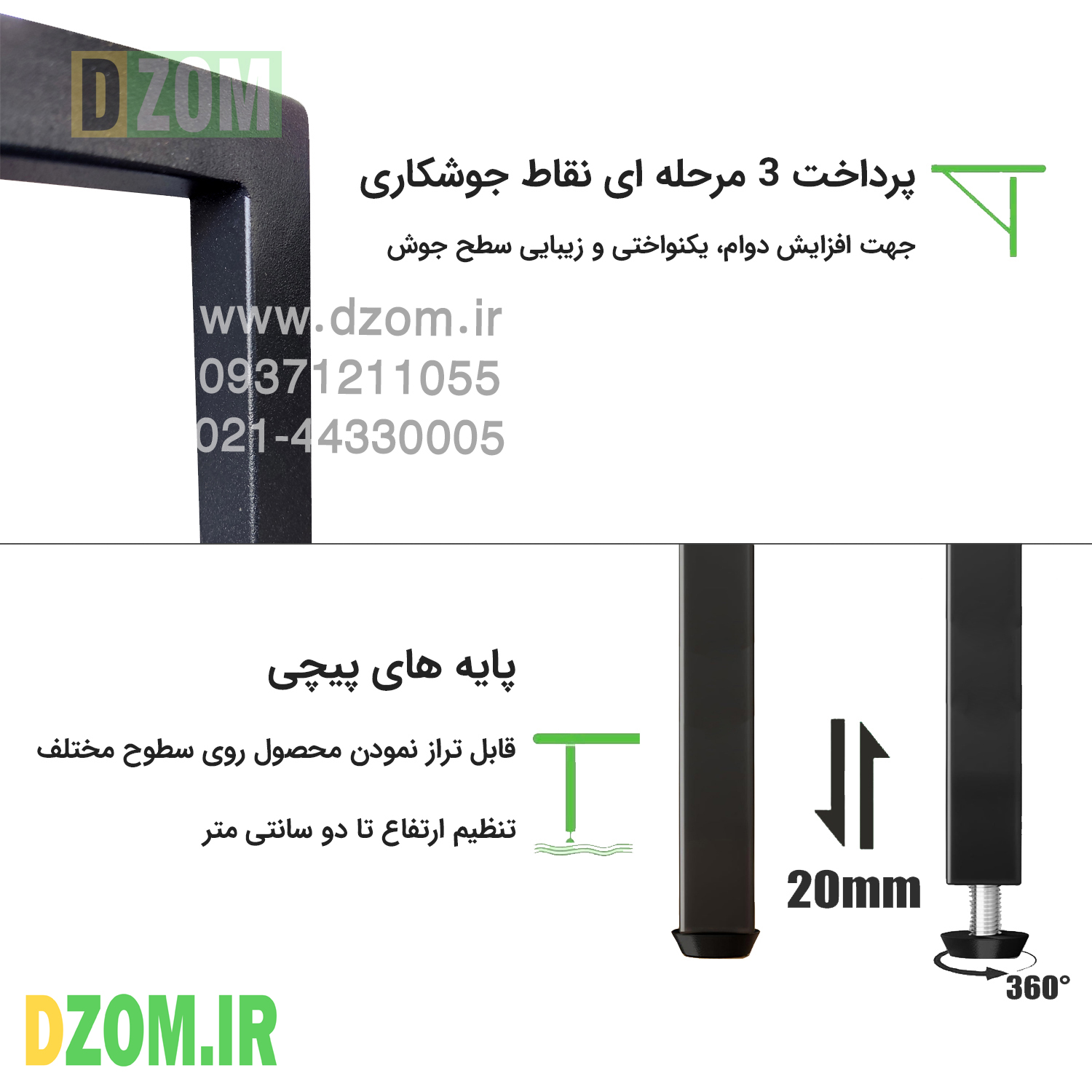 شلف ایستاده دیزم DZom مدل مونتاژی SLF_60×100_GR محصولی مونتاژی، سبک، شیک و در عین حال جذاب و کارآمد از سری تولیدات دیزم میباشد. مشتری گرامی توجه نمایید برند دیزم (شماره ثبت 414013 اداره ثبت علائم تجاری) هیچگونه نمایندگی فروش در بازارهای فیزیکی و آنلاین نداشته و محصولات خود را با کیفیت و بسته بندی اصلی، مستقیما از طریق سایت Dzom.ir یا شبکه های اجتماعی خود به مصرف کننده (End User) عرضه می نماید. لطفا از خرید کالای تقلبی از سایر فروشندگان خودداری فرمایید. این محصول بصورت سلف اسمبل (مونتاژی) تولید شده است. این شلف حمل و نقل آسان و هزینه حمل مقرون به صرفه ای دارد. از پایه های فلزی با مقطع 20×20 میلیمتر و رنگ رویه الکترواستاتیک با ماندگاری و دوام بالا ساخته شده است. همچنین پایه های پیچی، قابلیت تنظیم نسبت به سطح زمین را دارد تا بهترین تراز جهت جلوگیری از تکان خوردن را ایجاد نماید. صفحات شلف از جنس MDF درجه یک به رنگ طوسی می باشد. این محصول با طول 60cm، عرض 30cm و ارتفاع 100cm عرضه می شود. به این نکته توجه شود که تنوع رنگ انتخابی کالا تنها مربوط به رنگ پایه های فلزی میباشد.