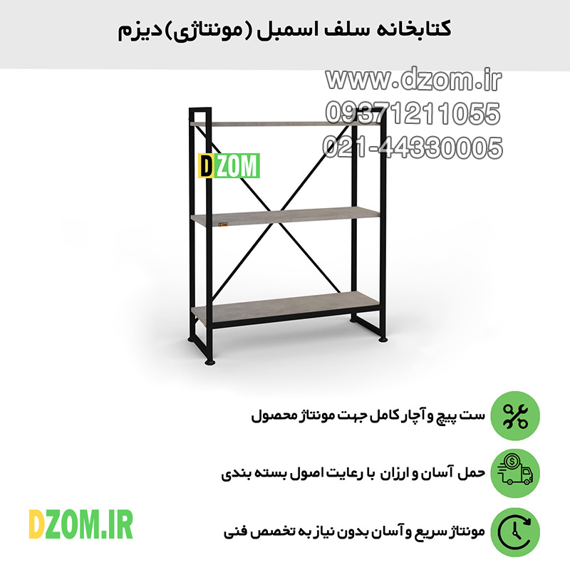 شلف ایستاده دیزم DZom مدل مونتاژی SLF_80×100_GR محصولی مونتاژی، سبک، شیک و در عین حال جذاب و کارآمد از سری تولیدات دیزم میباشد. مشتری گرامی توجه نمایید برند دیزم (شماره ثبت 414013 اداره ثبت علائم تجاری) هیچگونه نمایندگی فروش در بازارهای فیزیکی و آنلاین نداشته و محصولات خود را با کیفیت و بسته بندی اصلی، مستقیما از طریق سایت Dzom.ir یا شبکه های اجتماعی خود به مصرف کننده (End User) عرضه می نماید. لطفا از خرید کالای تقلبی از سایر فروشندگان خودداری فرمایید. این محصول بصورت سلف اسمبل (مونتاژی) تولید شده است. این شلف حمل و نقل آسان و هزینه حمل مقرون به صرفه ای دارد. از پایه های فلزی با مقطع 20×20 میلیمتر و رنگ رویه الکترواستاتیک با ماندگاری و دوام بالا ساخته شده است. همچنین پایه های پیچی، قابلیت تنظیم نسبت به سطح زمین را دارد تا بهترین تراز جهت جلوگیری از تکان خوردن را ایجاد نماید. صفحات شلف از جنس MDF درجه یک به رنگ طوسی می باشد. این محصول با طول 80cm، عرض 30cm و ارتفاع 100cm عرضه می شود. به این نکته توجه شود که تنوع رنگ انتخابی کالا تنها مربوط به رنگ پایه های فلزی میباشد.
