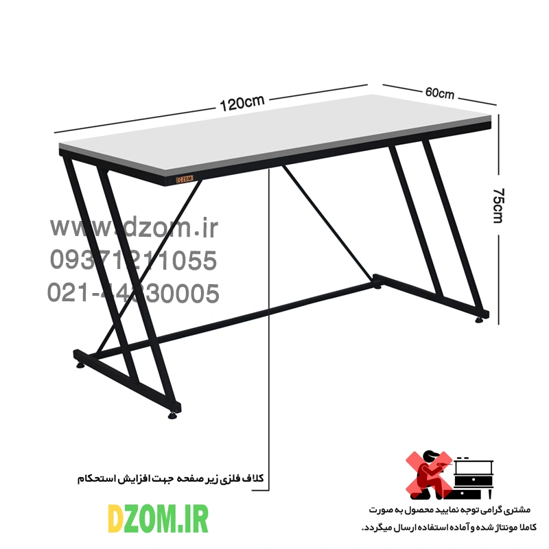 میز دیزم DZom مدل TLD-6-120-7ONE محصولی سبک، شیک و در عین حال جذاب و کارآمد از سری تولیدات دیزم میباشد. مشتری گرامی توجه نمایید برند دیزم (شماره ثبت 414013 اداره ثبت علائم تجاری) هیچگونه نمایندگی فروش در بازارهای فیزیکی و آنلاین نداشته و محصولات خود را با کیفیت و بسته بندی اصلی، مستقیما از طریق سایت Dzom.ir یا شبکه های اجتماعی خود به مصرف کننده (End User) عرضه می نماید. لطفا از خرید کالای تقلبی از سایر فروشندگان خودداری فرمایید. این میز از پایه های فلزی با رنگ رویه الکترواستاتیک با ماندگاری و دوام بالا ساخته شده است. همچنین پایه های پیچی، قابلیت تنظیم نسبت به سطح زمین را دارد تا بهترین تراز جهت جلوگیری از تکان خوردن را ایجاد نماید. صفحه میز از جنس MDF درجه یک برجسته طرح چوب به رنگ سفید می باشد. این محصول با طول 120cm، عرض 60cm و ارتفاع 75cm عرضه می شود. به این نکته توجه شود که تنوع رنگ انتخابی کالا تنها مربوط به رنگ پایه های فلزی میباشد و محصول به صورت کاملا مونتاژ شده و آماده استفاده برای مشتریان ارسال می گردد.