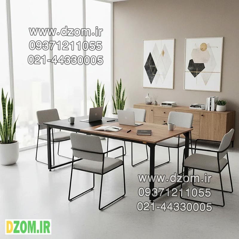 میز جلسه دیزم DZom مدل مونتاژی TLD_asm_150×90_Di_BABRN محصولی مونتاژی، سبک، شیک و در عین حال جذاب و کارآمد از سری تولیدات دیزم میباشد. این محصول بصورت سلف اسمبل (مونتاژی) تولید شده است. مشتری گرامی توجه نمایید برند دیزم (شماره ثبت 414013 اداره ثبت علائم تجاری) هیچگونه نمایندگی فروش در بازارهای فیزیکی و آنلاین نداشته و محصولات خود را با کیفیت و بسته بندی اصلی، مستقیما از طریق سایت Dzom.ir یا شبکه های اجتماعی خود به مصرف کننده (End User) عرضه می نماید. لطفا از خرید کالای تقلبی از سایر فروشندگان خودداری فرمایید. این میز حمل و نقل آسان و هزینه حمل مقرون به صرفه ای دارد. این میز از پایه های فلزی با مقطع 50×30 میلیمتر و رنگ رویه الکترواستاتیک با ماندگاری و دوام بالا ساخته شده است. همچنین پایه های پیچی، قابلیت تنظیم نسبت به سطح زمین را دارد تا بهترین تراز جهت جلوگیری از تکان خوردن را ایجاد نماید. صفحه میز از جنس MDF درجه یک برجسته طرح چوب و ترکیبی از دو رنگ مشکی و قهوه ای می باشد. این محصول با طول 150cm، عرض 90cm و ارتفاع 75cm عرضه می شود. به این نکته توجه شود که تنوع رنگ انتخابی کالا تنها مربوط به رنگ پایه های فلزی میباشد.