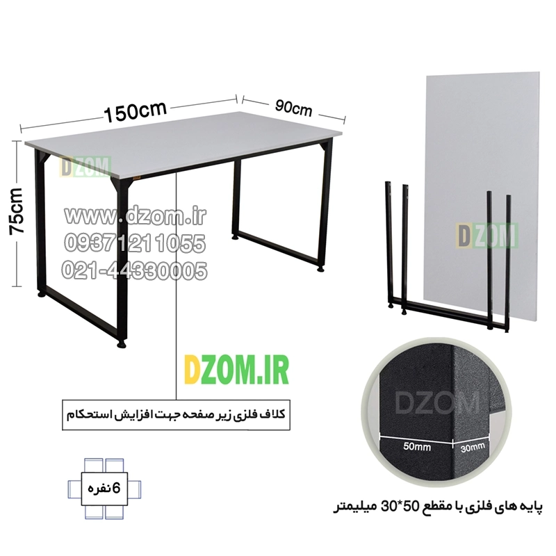 میز ناهارخوری دیزم DZom مدل مونتاژی LNC_asm_150×90_W محصولی مونتاژی، سبک، شیک و در عین حال جذاب و کارآمد از سری تولیدات دیزم میباشد. مشتری گرامی توجه نمایید برند دیزم (شماره ثبت 414013 اداره ثبت علائم تجاری) هیچگونه نمایندگی فروش در بازارهای فیزیکی و آنلاین نداشته و محصولات خود را با کیفیت و بسته بندی اصلی، مستقیما از طریق سایت Dzom.ir یا شبکه های اجتماعی خود به مصرف کننده (End User) عرضه می نماید. لطفا از خرید کالای تقلبی از سایر فروشندگان خودداری فرمایید. این محصول بصورت سلف اسمبل (مونتاژی) تولید شده است. این میز حمل و نقل آسان و هزینه حمل مقرون به صرفه ای دارد. این میز از پایه های فلزی با مقطع 50×30 میلیمتر و رنگ رویه الکترواستاتیک با ماندگاری و دوام بالا ساخته شده است. همچنین پایه های پیچی، قابلیت تنظیم نسبت به سطح زمین را دارد تا بهترین تراز جهت جلوگیری از تکان خوردن را ایجاد نماید. صفحه میز از جنس MDF درجه یک برجسته طرح چوب به رنگ سفید می باشد. این محصول با طول 150cm، عرض 90cm و ارتفاع 75cm عرضه می شود. به این نکته توجه شود که تنوع رنگ انتخابی کالا تنها مربوط به رنگ پایه های فلزی میباشد.