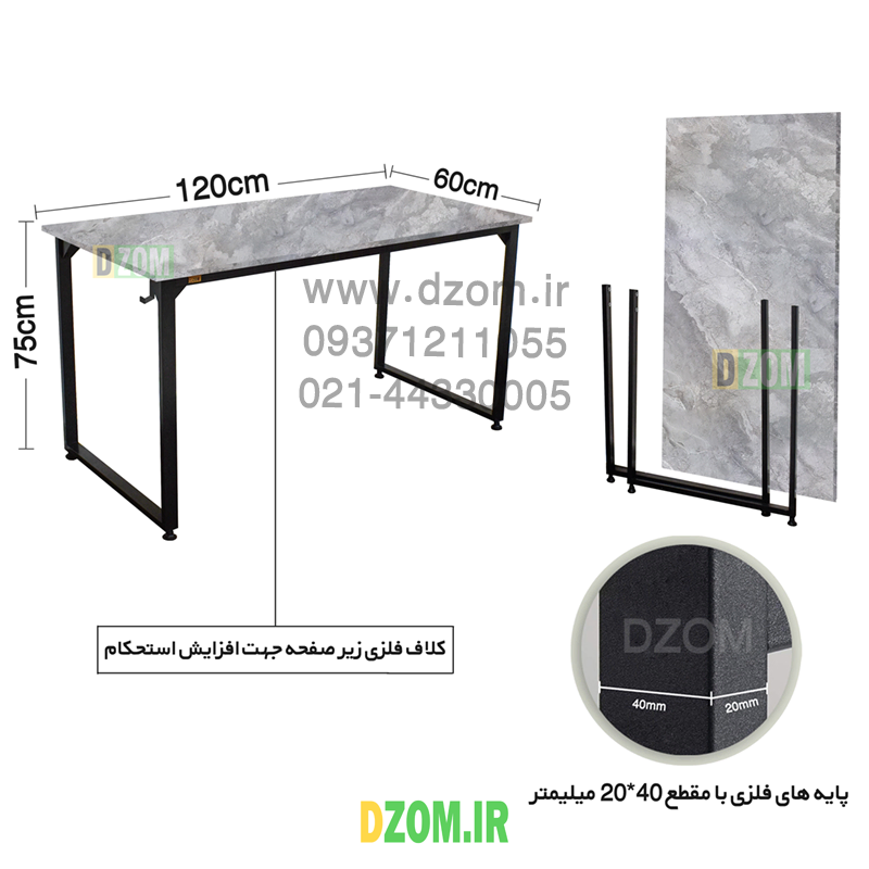 میز کامپیوتر دیزم DZom مدل مونتاژی TLD_asm_120×60_GR محصولی مونتاژی، سبک، شیک و در عین حال جذاب و کارآمد از سری تولیدات دیزم میباشد. مشتری گرامی توجه نمایید برند دیزم (شماره ثبت 414013 اداره ثبت علائم تجاری) هیچگونه نمایندگی فروش در بازارهای فیزیکی و آنلاین نداشته و محصولات خود را با کیفیت و بسته بندی اصلی، مستقیما از طریق سایت Dzom.ir یا شبکه های اجتماعی خود به مصرف کننده (End User) عرضه می نماید. لطفا از خرید کالای تقلبی از سایر فروشندگان خودداری فرمایید. این محصول بصورت سلف اسمبل (مونتاژی) تولید شده است. این میز حمل و نقل آسان و هزینه حمل مقرون به صرفه ای دارد. این میز از پایه های فلزی با مقطع 40×20 میلیمتر و رنگ رویه الکترواستاتیک با ماندگاری و دوام بالا ساخته شده است. همچنین پایه های پیچی، قابلیت تنظیم نسبت به سطح زمین را دارد تا بهترین تراز جهت جلوگیری از تکان خوردن را ایجاد نماید. صفحه میز از جنس MDF درجه یک برجسته به رنگ طوسی می باشد. این محصول با طول 120cm، عرض 60cm و ارتفاع 75cm عرضه می شود. به این نکته توجه شود که تنوع رنگ انتخابی کالا تنها مربوط به رنگ پایه های فلزی میباشد.
