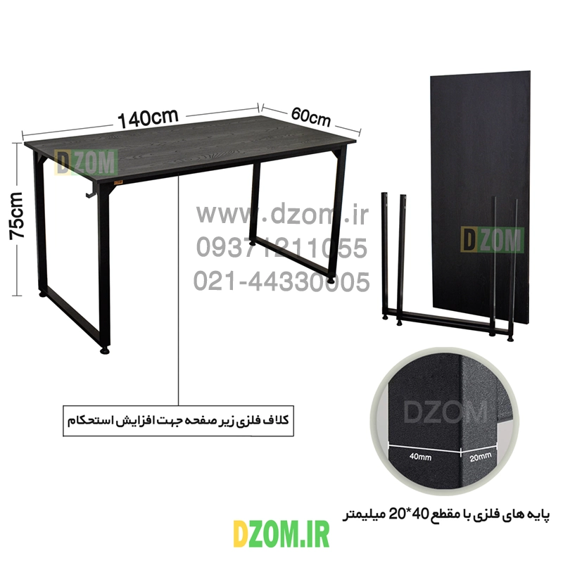 میز کامپیوتر دیزم DZom مدل مونتاژی TLD_asm_140×60_B محصولی مونتاژی، سبک، شیک و در عین حال جذاب و کارآمد از سری تولیدات دیزم میباشد. مشتری گرامی توجه نمایید برند دیزم (شماره ثبت 414013 اداره ثبت علائم تجاری) هیچگونه نمایندگی فروش در بازارهای فیزیکی و آنلاین نداشته و محصولات خود را با کیفیت و بسته بندی اصلی، مستقیما از طریق سایت Dzom.ir یا شبکه های اجتماعی خود به مصرف کننده (End User) عرضه می نماید. لطفا از خرید کالای تقلبی از سایر فروشندگان خودداری فرمایید. این محصول بصورت سلف اسمبل (مونتاژی) تولید شده است. ویژگی ممتاز این میز حمل و نقل آسان آن است. سلف اسمبل بودن محصول باعث شده است تا هزینه حمل و نقل بسیار مناسب و مقرون به صرفه شود. این میز از پایه های فلزی با مقطع 40×20 میلیمتر و رنگ رویه الکترواستاتیک با ماندگاری و دوام بالا ساخته شده است. همچنین پایه های پیچی، قابلیت تنظیم نسبت به سطح زمین را دارد تا بهترین تراز جهت جلوگیری از تکان خوردن را ایجاد نماید. صفحه میز از جنس MDF درجه یک برجسته طرح چوب به رنگ مشکی می باشد. این محصول با طول 140cm، عرض 60cm و ارتفاع 75cm عرضه می شود. به این نکته توجه شود که تنوع رنگ انتخابی کالا تنها مربوط به رنگ پایه های فلزی میباشد.