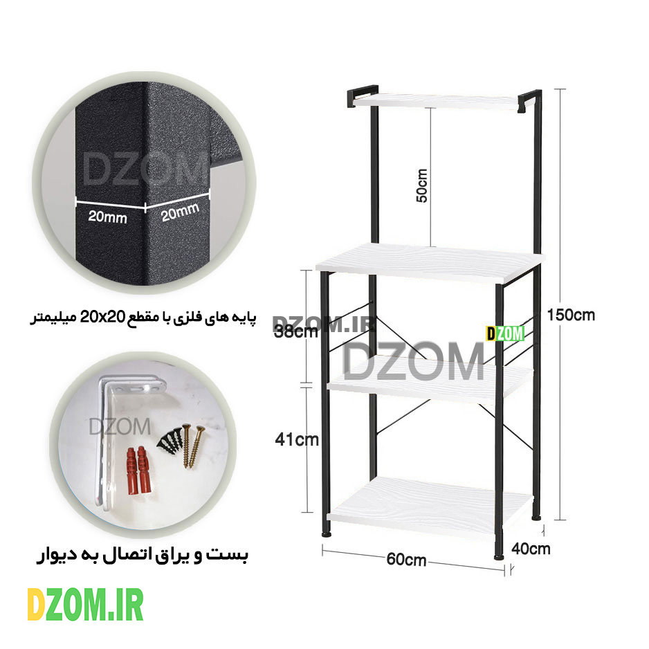 کافی بار دیزم DZom مدل SLF_F100_60_BRN محصولی سبک، شیک و در عین حال جذاب و کارآمد از سری تولیدات دیزم میباشد. مشتری گرامی توجه نمایید محصولات برند دیزم (شماره ثبت 414013 اداره ثبت علائم تجاری) با کیفیت و بسته بندی اصلی تنها توسط فروشنده رسمی دیزم در دیجی کالا عرضه می گردد، لطفا از خرید کالای تقلبی از سایر فروشندگان خودداری فرمایید. برند دیزم هیچگونه نمایندگی فروش در بازارهای فیزیکی و آنلاین نداشته و محصولات خود را مستقیما از طریق سایت Dzom.ir یا شبکه های اجتماعی خود به مصرف کننده (End User) عرضه می نماید. این محصول از پایه های فلزی با مقطع 20×20 میلیمتر و رنگ رویه الکترواستاتیک با ماندگاری و دوام بالا ساخته شده است. همچنین پایه های پیچی، قابلیت تنظیم نسبت به سطح زمین را دارد تا بهترین تراز جهت جلوگیری از تکان خوردن را ایجاد نماید. صفحه میز از جنس MDF درجه یک برجسته طرح چوب به رنگ سفید می باشد. این محصول با طول 60cm، عرض 40cm و ارتفاع 150cm عرضه می شود. به این نکته توجه شود که تنوع رنگ انتخابی کالا تنها مربوط به رنگ پایه های فلزی میباشد و محصول به صورت کاملا مونتاژ شده و آماده استفاده برای مشتریان ارسال می گردد. توصیه میشود جهت حفظ ایمنی و ثبات بیشتر، محصول در یک یا دو نقطه به دیوار پیچ گرد.(یراق اتصال داخل بسته بندی موجود است).