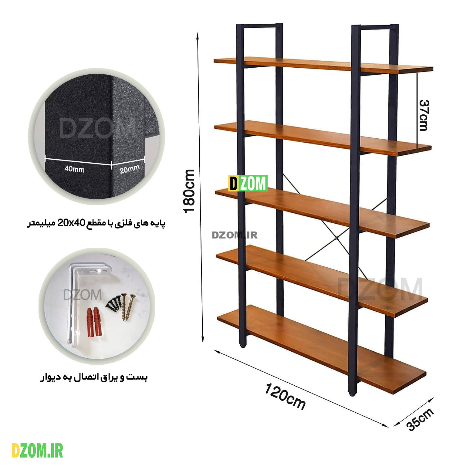 شلف دیواری دیزم DZom مدل SLF-00A58-120BRN محصولی سبک، شیک و در عین حال جذاب و کارآمد از سری تولیدات دیزم میباشد. مشتری گرامی توجه نمایید محصولات برند دیزم (شماره ثبت 414013 اداره ثبت علائم تجاری) با کیفیت و بسته بندی اصلی تنها توسط فروشنده رسمی دیزم در دیجی کالا عرضه می گردد، لطفا از خرید کالای تقلبی از سایر فروشندگان خودداری فرمایید. برند دیزم هیچگونه نمایندگی فروش در بازارهای فیزیکی و آنلاین نداشته و محصولات خود را مستقیما از طریق سایت Dzom.ir یا شبکه های اجتماعی خود به مصرف کننده (End User) عرضه می نماید. این محصول از پایه های فلزی با مقطع 20×40 میلیمتر و رنگ رویه الکترواستاتیک با ماندگاری و دوام بالا ساخته شده است. همچنین پایه های پیچی، قابلیت تنظیم نسبت به سطح زمین را دارد تا بهترین تراز جهت جلوگیری از تکان خوردن را ایجاد نماید. صفحه محصول از جنس MDF درجه یک برجسته طرح چوب به رنگ قهوه ای می باشد. این محصول با طول 120cm، عرض 35cm و ارتفاع 180cmعرضه می شود. به این نکته توجه شود که تنوع رنگ انتخابی کالا تنها مربوط به رنگ پایه های فلزی میباشد و محصول به صورت کاملا مونتاژ شده و آماده استفاده برای مشتریان ارسال می گردد. توصیه میشود جهت حفظ ایمنی و ثبات بیشتر، محصول در یک یا دو نقطه به دیوار پیچ گرد.(یراق اتصال داخل بسته بندی موجود است).