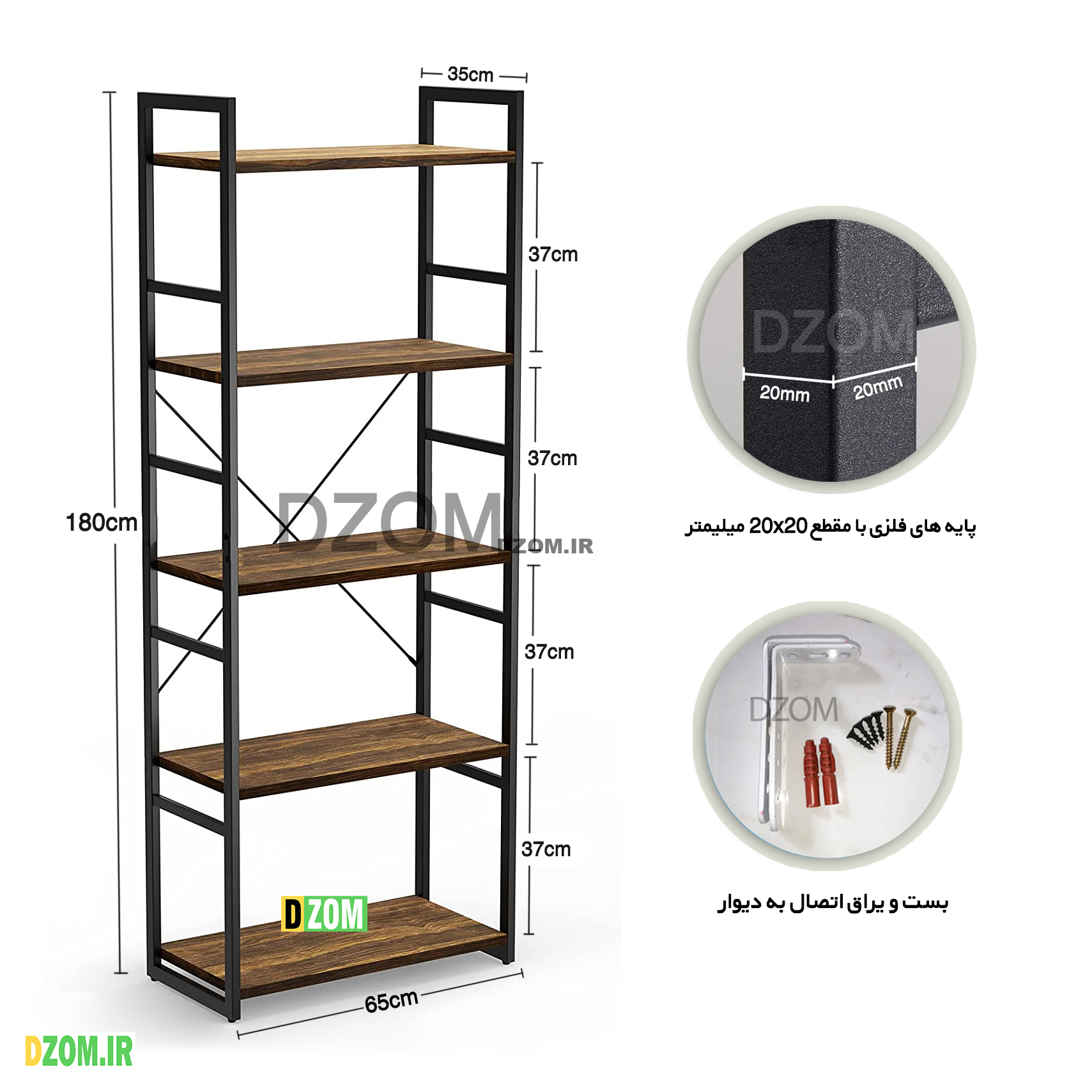 شلف دیزم DZom مدل SLF-14F51-65BRN محصولی سبک، شیک و در عین حال جذاب و کارآمد از سری تولیدات دیزم میباشد. مشتری گرامی توجه نمایید محصولات برند دیزم (شماره ثبت 414013 اداره ثبت علائم تجاری) با کیفیت و بسته بندی اصلی تنها توسط فروشنده رسمی دیزم در دیجی کالا عرضه می گردد، لطفا از خرید کالای تقلبی از سایر فروشندگان خودداری فرمایید. برند دیزم هیچگونه نمایندگی فروش در بازارهای فیزیکی و آنلاین نداشته و محصولات خود را مستقیما از طریق سایت Dzom.ir یا شبکه های اجتماعی خود به مصرف کننده (End User) عرضه می نماید. این محصول از پایه های فلزی با مقطع 20×20 میلیمتر و رنگ رویه الکترواستاتیک با ماندگاری و دوام بالا ساخته شده است. همچنین پایه های پیچی، قابلیت تنظیم نسبت به سطح زمین را دارد تا بهترین تراز جهت جلوگیری از تکان خوردن را ایجاد نماید. صفحه محصول از جنس MDF درجه یک برجسته طرح چوب و به رنگ قهوه ای می باشد. این محصول با طول 65cm، عرض 35cm و ارتفاع 180cm عرضه می شود. به این نکته توجه شود که تنوع رنگ انتخابی کالا تنها مربوط به رنگ پایه های فلزی میباشد و محصول به صورت کاملا مونتاژ شده و آماده استفاده برای مشتریان ارسال می گردد. توصیه میشود جهت حفظ ایمنی و ثبات بیشتر، محصول در یک یا دو نقطه به دیوار پیچ گرد.(یراق اتصال داخل بسته بندی موجود است).