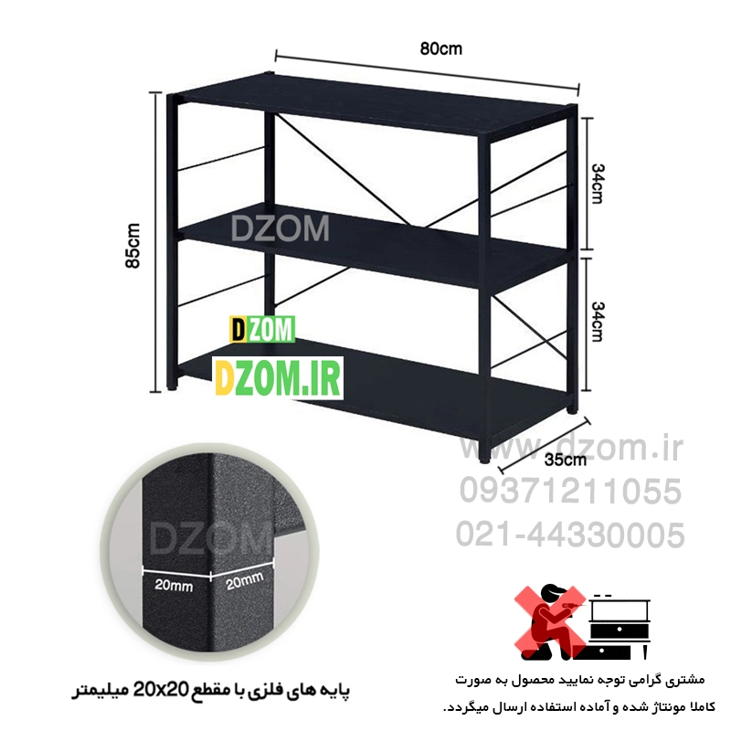 شلف دیزم DZom مدل SLF-77K12-80B محصولی سبک، شیک و در عین حال جذاب و کارآمد از سری تولیدات دیزم میباشد. مشتری گرامی توجه نمایید برند دیزم (شماره ثبت 414013 اداره ثبت علائم تجاری) هیچگونه نمایندگی فروش در بازارهای فیزیکی و آنلاین نداشته و محصولات خود را با کیفیت و بسته بندی اصلی، مستقیما از طریق سایت Dzom.ir یا شبکه های اجتماعی خود به مصرف کننده (End User) عرضه می نماید. لطفا از خرید کالای تقلبی از سایر فروشندگان خودداری فرمایید. این محصول از پایه های فلزی با مقطع 20×20 میلیمتر و رنگ رویه الکترواستاتیک با ماندگاری و دوام بالا ساخته شده است. همچنین پایه های پیچی، قابلیت تنظیم نسبت به سطح زمین را دارد تا بهترین تراز جهت جلوگیری از تکان خوردن را ایجاد نماید. صفحه محصول از جنس MDF درجه یک برجسته طرح چوب و به رنگ مشکی می باشد. این محصول با طول 80cm، عرض 35cm و ارتفاع 85cm عرضه می شود. به این نکته توجه شود که تنوع رنگ انتخابی کالا تنها مربوط به رنگ پایه های فلزی میباشد و محصول به صورت کاملا مونتاژ شده و آماده استفاده برای مشتریان ارسال می گردد. توصیه میشود جهت حفظ ایمنی و ثبات بیشتر، محصول در یک یا دو نقطه به دیوار پیچ گرد.(یراق اتصال داخل بسته بندی موجود است).