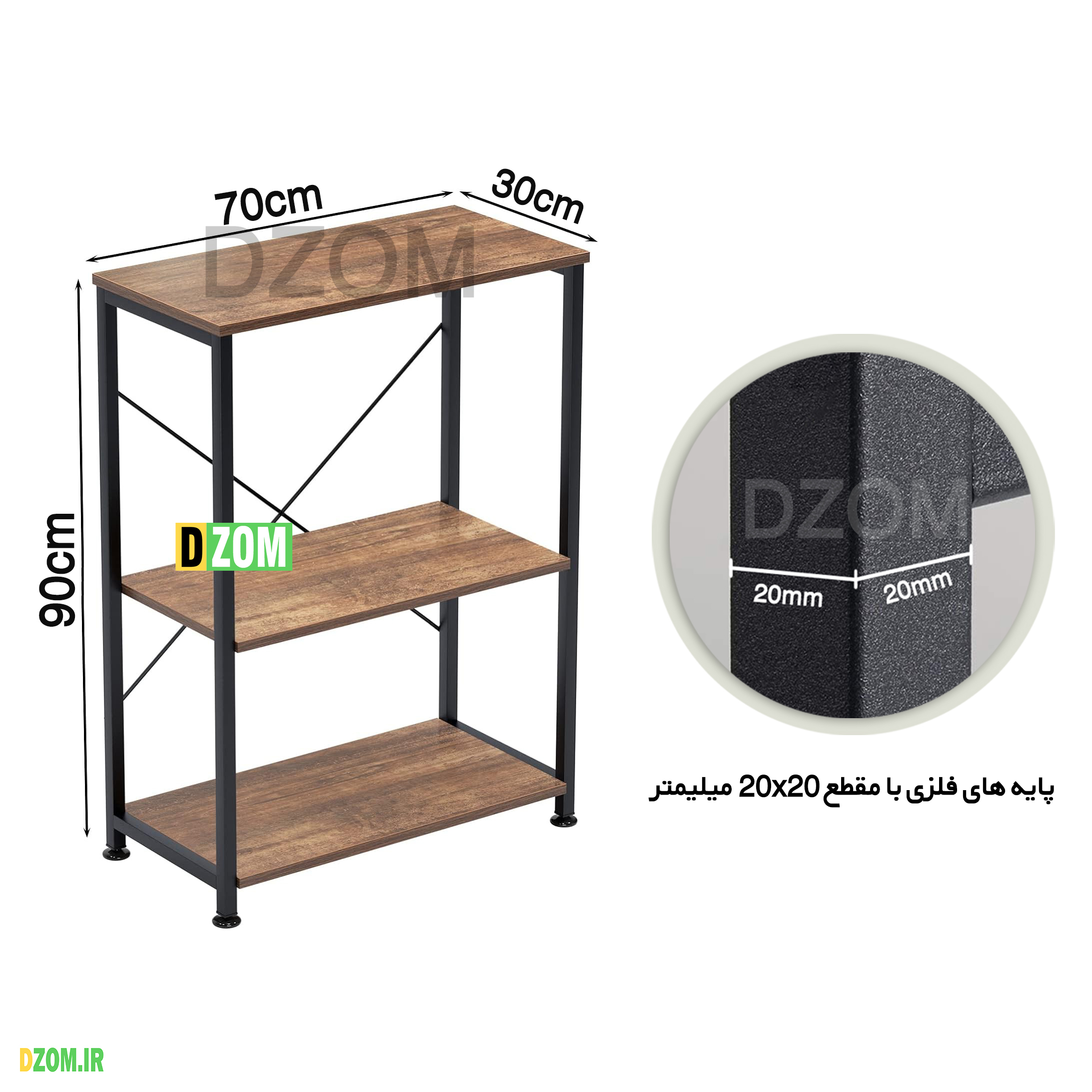 کافی بار دیزم DZom مدل SLF_32R55_70BRN محصولی سبک، شیک و در عین حال جذاب و کارآمد از سری تولیدات دیزم میباشد. مشتری گرامی توجه نمایید محصولات برند دیزم (شماره ثبت 414013 اداره ثبت علائم تجاری) با کیفیت و بسته بندی اصلی تنها توسط فروشنده رسمی دیزم در دیجی کالا عرضه می گردد، لطفا از خرید کالای تقلبی از سایر فروشندگان خودداری فرمایید. برند دیزم هیچگونه نمایندگی فروش در بازارهای فیزیکی و آنلاین نداشته و محصولات خود را مستقیما از طریق سایت Dzom.ir یا شبکه های اجتماعی خود به مصرف کننده (End User) عرضه می نماید. این محصول از پایه های فلزی با مقطع 20×20 میلیمتر و رنگ رویه الکترواستاتیک با ماندگاری و دوام بالا ساخته شده است. همچنین پایه های پیچی، قابلیت تنظیم نسبت به سطح زمین را دارد تا بهترین تراز جهت جلوگیری از تکان خوردن را ایجاد نماید. صفحه میز از جنس MDF درجه یک برجسته طرح چوب به رنگ قهوه ای می باشد. این محصول با طول 70cm، عرض 30cm و ارتفاع 90cm عرضه می شود. به این نکته توجه شود که تنوع رنگ انتخابی کالا تنها مربوط به رنگ پایه های فلزی میباشد و محصول به صورت کاملا مونتاژ شده و آماده استفاده برای مشتریان ارسال می گردد.