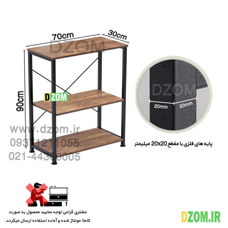 کافی بار دیزم DZom مدل SLF_32R55_70BRN محصولی سبک، شیک و در عین حال جذاب و کارآمد از سری تولیدات دیزم میباشد. مشتری گرامی توجه نمایید برند دیزم هیچگونه نمایندگی فروش در بازارهای فیزیکی و آنلاین نداشته و محصولات خود را با کیفیت و بسته بندی اصلی، مستقیما از طریق سایت Dzom.ir یا شبکه های اجتماعی خود به مصرف کننده (End User) عرضه می نماید. لطفا از خرید کالای تقلبی از سایر فروشندگان خودداری فرمایید. این محصول از پایه های فلزی با مقطع 20×20 میلیمتر و رنگ رویه الکترواستاتیک با ماندگاری و دوام بالا ساخته شده است. همچنین پایه های پیچی، قابلیت تنظیم نسبت به سطح زمین را دارد تا بهترین تراز جهت جلوگیری از تکان خوردن را ایجاد نماید. صفحه میز از جنس MDF درجه یک برجسته طرح چوب به رنگ قهوه ای می باشد. این محصول با طول 70cm، عرض 30cm و ارتفاع 90cm عرضه می شود. به این نکته توجه شود که تنوع رنگ انتخابی کالا تنها مربوط به رنگ پایه های فلزی میباشد و محصول به صورت کاملا مونتاژ شده و آماده استفاده برای مشتریان ارسال می گردد.