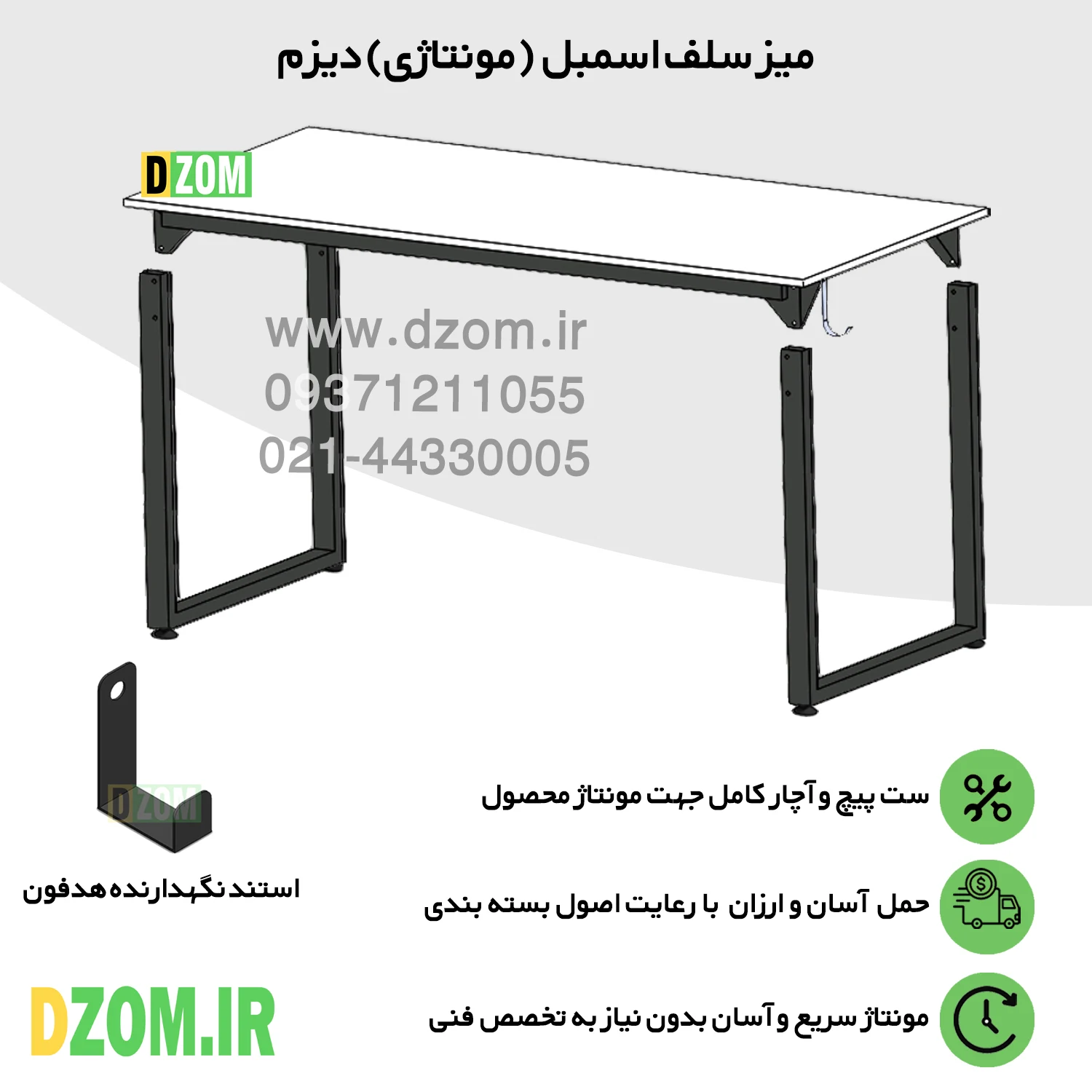 میز اداری دیزم DZom مدل مونتاژی TLD_asm_150×80_W محصولی مونتاژی، سبک، شیک و در عین حال جذاب و کارآمد از سری تولیدات دیزم میباشد. مشتری گرامی توجه نمایید برند دیزم (شماره ثبت 414013 اداره ثبت علائم تجاری) هیچگونه نمایندگی فروش در بازارهای فیزیکی و آنلاین نداشته و محصولات خود را با کیفیت و بسته بندی اصلی، مستقیما از طریق سایت Dzom.ir یا شبکه های اجتماعی خود به مصرف کننده (End User) عرضه می نماید. لطفا از خرید کالای تقلبی از سایر فروشندگان خودداری فرمایید. این محصول بصورت سلف اسمبل (مونتاژی) تولید شده است. این میز حمل و نقل آسان و هزینه حمل مقرون به صرفه ای دارد. این میز از پایه های فلزی با مقطع 50×30 میلیمتر و رنگ رویه الکترواستاتیک با ماندگاری و دوام بالا ساخته شده است. همچنین پایه های پیچی، قابلیت تنظیم نسبت به سطح زمین را دارد تا بهترین تراز جهت جلوگیری از تکان خوردن را ایجاد نماید. صفحه میز از جنس MDF درجه یک برجسته طرح چوب به رنگ سفید می باشد. این محصول با طول 150cm، عرض 80cm و ارتفاع 75cm عرضه می شود. به این نکته توجه شود که تنوع رنگ انتخابی کالا تنها مربوط به رنگ پایه های فلزی میباشد.