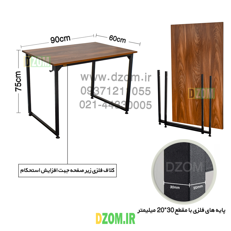میز لپ تاپ دیزم DZom مدل مونتاژی TLD_asm_90×60_BRN محصولی مونتاژی، سبک، شیک و در عین حال جذاب و کارآمد از سری تولیدات دیزم میباشد. مشتری گرامی توجه نمایید برند دیزم (شماره ثبت 414013 اداره ثبت علائم تجاری) هیچگونه نمایندگی فروش در بازارهای فیزیکی و آنلاین نداشته و محصولات خود را با کیفیت و بسته بندی اصلی، مستقیما از طریق سایت Dzom.ir یا شبکه های اجتماعی خود به مصرف کننده (End User) عرضه می نماید. لطفا از خرید کالای تقلبی از سایر فروشندگان خودداری فرمایید. این محصول بصورت سلف اسمبل (مونتاژی) تولید شده است. این میز حمل و نقل آسان و هزینه حمل مقرون به صرفه ای دارد. این میز از پایه های فلزی با مقطع 30×20 میلیمتر و رنگ رویه الکترواستاتیک با ماندگاری و دوام بالا ساخته شده است. همچنین پایه های پیچی، قابلیت تنظیم نسبت به سطح زمین را دارد تا بهترین تراز جهت جلوگیری از تکان خوردن را ایجاد نماید. صفحه میز از جنس MDF درجه یک برجسته طرح چوب و به رنگ قهوه ای می باشد. این محصول با طول 90cm، عرض 60cm و ارتفاع 75cm عرضه می شود. به این نکته توجه شود که تنوع رنگ انتخابی کالا تنها مربوط به رنگ پایه های فلزی میباشد.