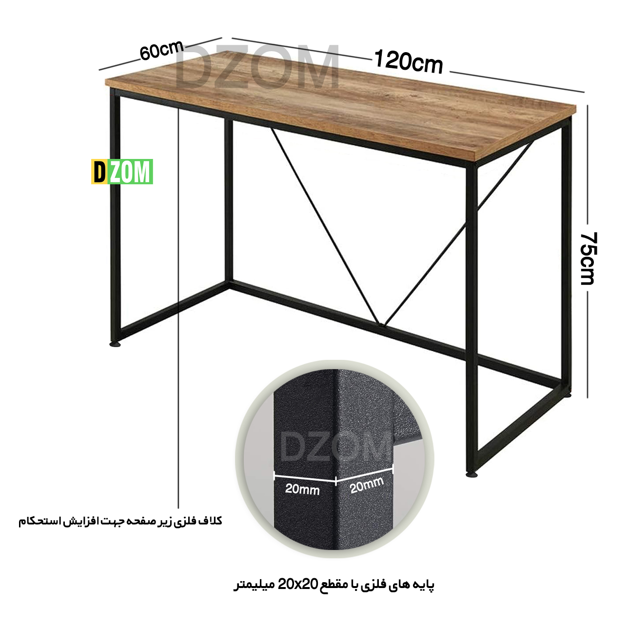 میز دیزم DZom مدل SD-1-120-1ONE محصولی سبک، شیک و در عین حال جذاب و کارآمد از سری تولیدات دیزم میباشد. مشتری گرامی توجه نمایید محصولات برند دیزم (شماره ثبت 414013 اداره ثبت علائم تجاری) با کیفیت و بسته بندی اصلی تنها توسط فروشنده رسمی دیزم در دیجی کالا عرضه می گردد، لطفا از خرید کالای تقلبی از سایر فروشندگان خودداری فرمایید. برند دیزم هیچگونه نمایندگی فروش در بازارهای فیزیکی و آنلاین نداشته و محصولات خود را مستقیما از طریق سایت Dzom.ir یا شبکه های اجتماعی خود به مصرف کننده (End User) عرضه می نماید. این محصول از پایه های فلزی با مقطع 20×20 میلیمتر و رنگ رویه الکترواستاتیک با ماندگاری و دوام بالا ساخته شده است. همچنین پایه های پیچی، قابلیت تنظیم نسبت به سطح زمین را دارد تا بهترین تراز جهت جلوگیری از تکان خوردن را ایجاد نماید. صفحه محصول از جنس MDF درجه یک برجسته طرح چوب و به رنگ قهوه ای می باشد. این محصول با طول 120cm، عرض 60cm و ارتفاع 75cm عرضه می شود. به این نکته توجه شود که تنوع رنگ انتخابی کالا تنها مربوط به رنگ پایه های فلزی میباشد و محصول به صورت کاملا مونتاژ شده و آماده استفاده برای مشتریان ارسال می گردد.