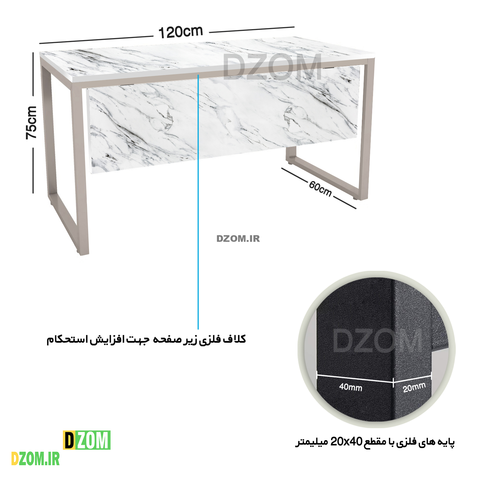 میز دیزم DZom مدل TLD-11J41-120SW محصولی سبک، شیک و در عین حال جذاب و کارآمد از سری تولیدات دیزم میباشد. مشتری گرامی توجه نمایید محصولات برند دیزم (شماره ثبت 414013 اداره ثبت علائم تجاری) با کیفیت و بسته بندی اصلی تنها توسط فروشنده رسمی دیزم در دیجی کالا عرضه می گردد، لطفا از خرید کالای تقلبی از سایر فروشندگان خودداری فرمایید. برند دیزم هیچگونه نمایندگی فروش در بازارهای فیزیکی و آنلاین نداشته و محصولات خود را مستقیما از طریق سایت Dzom.ir یا شبکه های اجتماعی خود به مصرف کننده (End User) عرضه می نماید. این میز که قابلیت استفاده به عنوان میز تحریر، میز کامپیوتر، میز جلسه، میز کار و حتی به عنوان یک میز اداری را دارد، از پایه های فلزی با مقطع 20×40 میلیمتر و رنگ رویه الکترواستاتیک با ماندگاری و دوام بالا ساخته شده است. همچنین پایه های پیچی، قابلیت تنظیم نسبت به سطح زمین را دارد تا بهترین تراز جهت جلوگیری از تکان خوردن را ایجاد نماید. صفحه میز از جنس MDF درجه یک طرح سنگ و به رنگ سفید می باشد. این محصول با طول 120cm، عرض 60cm و ارتفاع 75cm عرضه می شود. به این نکته توجه شود که تنوع رنگ انتخابی کالا تنها مربوط به رنگ پایه های فلزی میباشد و محصول به صورت کاملا مونتاژ شده و آماده استفاده برای مشتریان ارسال می گردد.