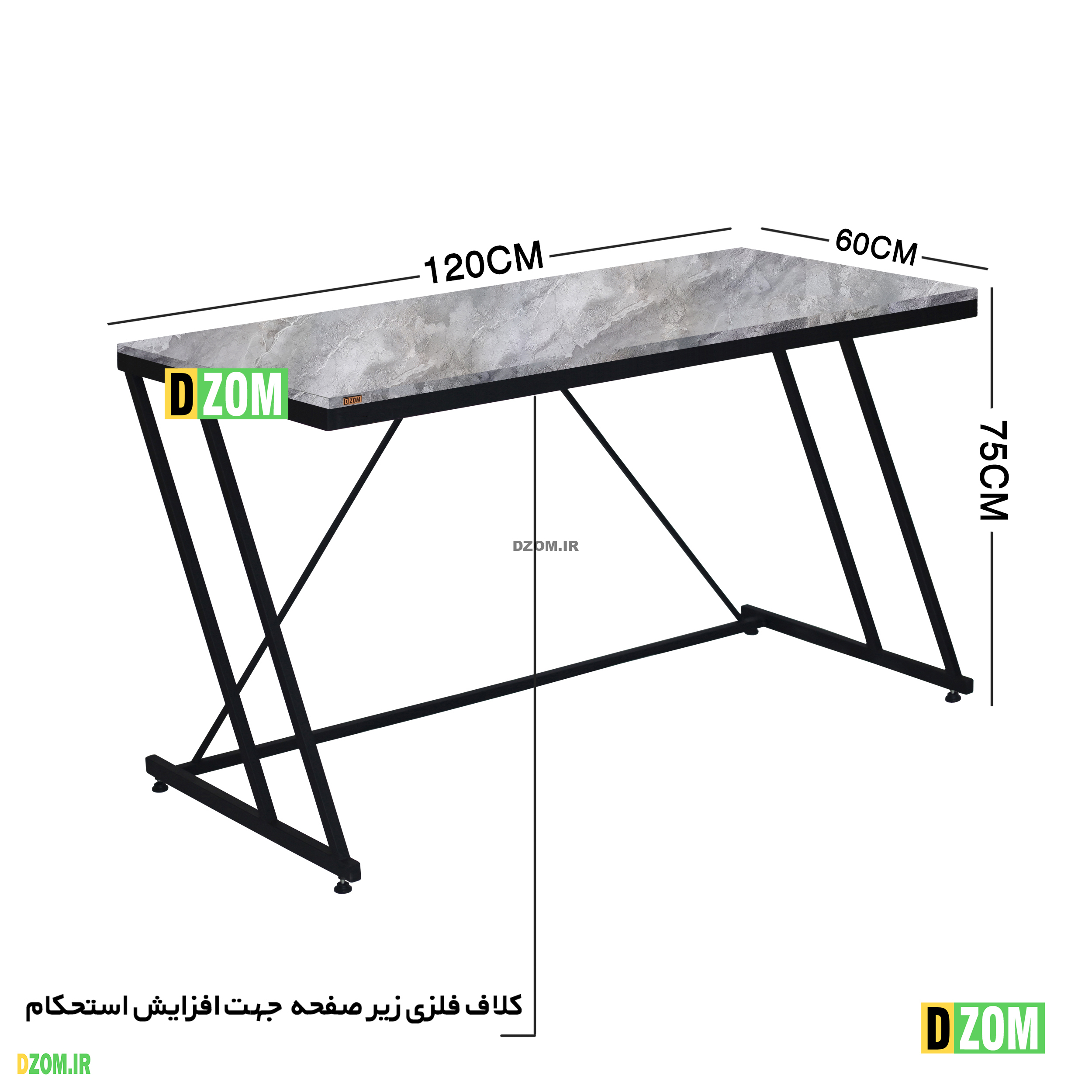 میز دیزم DZom مدل TLD-77E25-120GRONE محصولی سبک، شیک و در عین حال جذاب و کارآمد از سری تولیدات دیزم میباشد. مشتری گرامی توجه نمایید برند دیزم (شماره ثبت 414013 اداره ثبت علائم تجاری) هیچگونه نمایندگی فروش در بازارهای فیزیکی و آنلاین نداشته و محصولات خود را با کیفیت و بسته بندی اصلی، مستقیما از طریق سایت Dzom.ir یا شبکه های اجتماعی خود به مصرف کننده (End User) عرضه می نماید. لطفا از خرید کالای تقلبی از سایر فروشندگان خودداری فرمایید. این میز از پایه های فلزی با رنگ رویه الکترواستاتیک با ماندگاری و دوام بالا ساخته شده است. همچنین پایه های پیچی، قابلیت تنظیم نسبت به سطح زمین را دارد تا بهترین تراز جهت جلوگیری از تکان خوردن را ایجاد نماید. صفحه میز از جنس MDF درجه یک برجسته به رنگ طوسی می باشد. این محصول با طول 120cm، عرض 60cm و ارتفاع 75cm عرضه می شود. به این نکته توجه شود که تنوع رنگ انتخابی کالا تنها مربوط به رنگ پایه های فلزی میباشد و محصول به صورت کاملا مونتاژ شده و آماده استفاده برای مشتریان ارسال می گردد.