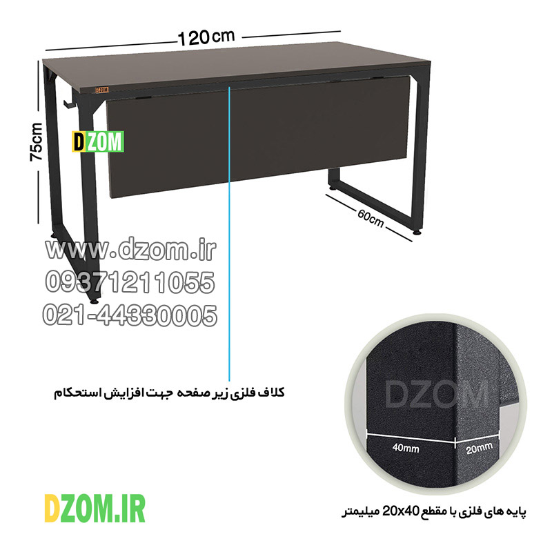 میز تحریر دیزم DZOM مدل مونتاژی WD_front_120×60_B محصولی مونتاژی، سبک، شیک و در عین حال جذاب و کارآمد از سری تولیدات دیزم میباشد. این محصول بصورت سلف اسمبل (مونتاژی) تولید شده است. این میز حمل و نقل آسان و هزینه حمل مقرون به صرفه ای دارد. مشتری گرامی توجه نمایید برند دیزم (شماره ثبت 414013 اداره ثبت علائم تجاری) هیچگونه نمایندگی فروش در بازارهای فیزیکی و آنلاین نداشته و محصولات خود را با کیفیت و بسته بندی اصلی، مستقیما از طریق سایت Dzom.ir یا شبکه های اجتماعی خود به مصرف کننده (End User) عرضه می نماید. لطفا از خرید کالای تقلبی از سایر فروشندگان خودداری فرمایید. این میز از پایه های فلزی با مقطع 20×40 میلیمتر و رنگ رویه الکترواستاتیک با ماندگاری و دوام بالا ساخته شده است. همچنین پایه های پیچی، قابلیت تنظیم نسبت به سطح زمین را دارد تا بهترین تراز جهت جلوگیری از تکان خوردن را ایجاد نماید. صفحه میز از جنس MDF درجه یک برجسته طرح چوب به رنگ مشکی می باشد. این محصول با طول 120cm، عرض 60cm و ارتفاع 75cm عرضه می شود. به این نکته توجه شود که تنوع رنگ انتخابی کالا تنها مربوط به رنگ پایه های فلزی میباشد.