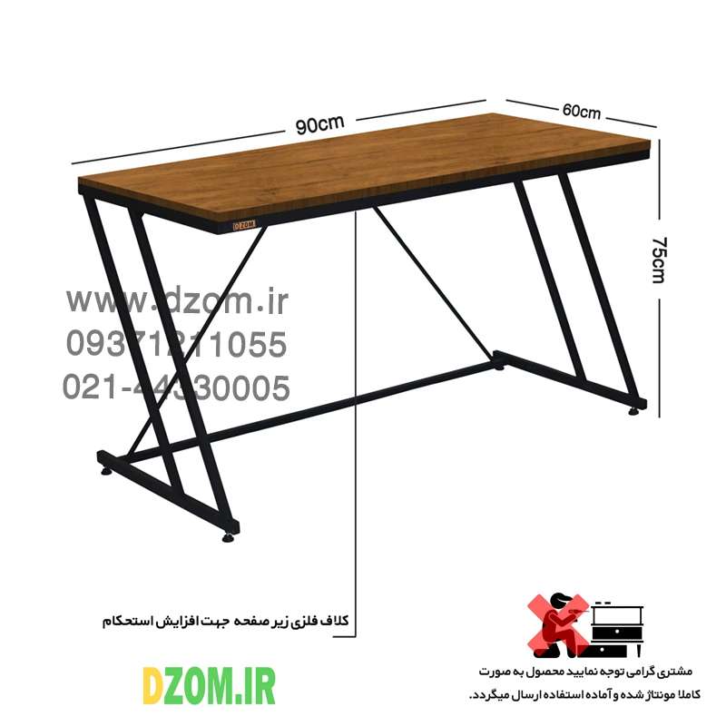 میز دیزم DZom مدل WD-77E25-90BRNONE محصولی سبک، شیک و در عین حال جذاب و کارآمد از سری تولیدات دیزم میباشد. مشتری گرامی توجه نمایید برند دیزم (شماره ثبت 414013 اداره ثبت علائم تجاری) هیچگونه نمایندگی فروش در بازارهای فیزیکی و آنلاین نداشته و محصولات خود را با کیفیت و بسته بندی اصلی، مستقیما از طریق سایت Dzom.ir یا شبکه های اجتماعی خود به مصرف کننده (End User) عرضه می نماید. لطفا از خرید کالای تقلبی از سایر فروشندگان خودداری فرمایید. این میز از پایه های فلزی با رنگ رویه الکترواستاتیک با ماندگاری و دوام بالا ساخته شده است. همچنین پایه های پیچی، قابلیت تنظیم نسبت به سطح زمین را دارد تا بهترین تراز جهت جلوگیری از تکان خوردن را ایجاد نماید. صفحه میز از جنس MDF درجه یک برجسته طرح چوب به رنگ قهوه ای می باشد. این محصول با طول 90cm، عرض 60cm و ارتفاع 75cm عرضه می شود. به این نکته توجه شود که تنوع رنگ انتخابی کالا تنها مربوط به رنگ پایه های فلزی میباشد و محصول به صورت کاملا مونتاژ شده و آماده استفاده برای مشتریان ارسال می گردد.
