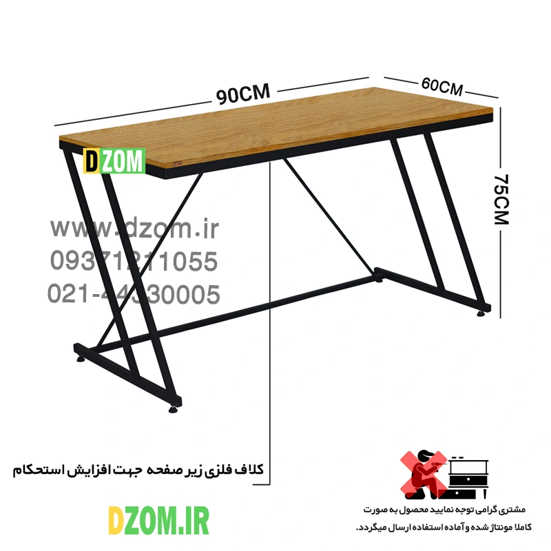 میز دیزم DZom مدل WD-77E25-90LIGHTONE محصولی سبک، شیک و در عین حال جذاب و کارآمد از سری تولیدات دیزم میباشد. مشتری گرامی توجه نمایید برند دیزم (شماره ثبت 414013 اداره ثبت علائم تجاری) هیچگونه نمایندگی فروش در بازارهای فیزیکی و آنلاین نداشته و محصولات خود را با کیفیت و بسته بندی اصلی، مستقیما از طریق سایت Dzom.ir یا شبکه های اجتماعی خود به مصرف کننده (End User) عرضه می نماید. لطفا از خرید کالای تقلبی از سایر فروشندگان خودداری فرمایید. این میز از پایه های فلزی با رنگ رویه الکترواستاتیک با ماندگاری و دوام بالا ساخته شده است. همچنین پایه های پیچی، قابلیت تنظیم نسبت به سطح زمین را دارد تا بهترین تراز جهت جلوگیری از تکان خوردن را ایجاد نماید. صفحه میز از جنس MDF درجه یک برجسته طرح چوب به رنگ قهوه ای روشن می باشد. این محصول با طول 90cm، عرض 60cm و ارتفاع 75cm عرضه می شود. به این نکته توجه شود که تنوع رنگ انتخابی کالا تنها مربوط به رنگ پایه های فلزی میباشد و محصول به صورت کاملا مونتاژ شده و آماده استفاده برای مشتریان ارسال می گردد.