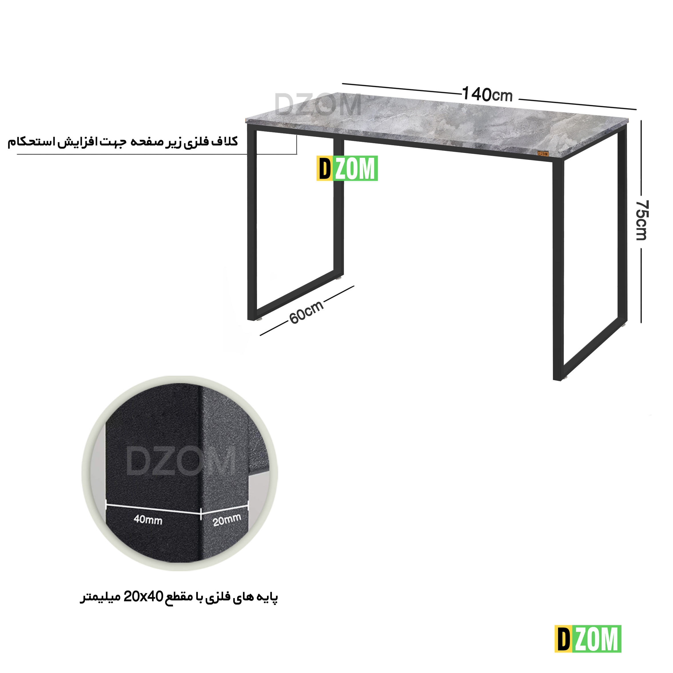 میز تحریر دیزم DZom مدل WD-93D43-140GRONE محصولی سبک، شیک و در عین حال جذاب و کارآمد از سری تولیدات دیزم میباشد. مشتری گرامی توجه نمایید محصولات برند دیزم (شماره ثبت 414013 اداره ثبت علائم تجاری) با کیفیت و بسته بندی اصلی تنها توسط فروشنده رسمی دیزم در دیجی کالا عرضه می گردد، لطفا از خرید کالای تقلبی از سایر فروشندگان خودداری فرمایید. برند دیزم هیچگونه نمایندگی فروش در بازارهای فیزیکی و آنلاین نداشته و محصولات خود را مستقیما از طریق سایت Dzom.ir یا شبکه های اجتماعی خود به مصرف کننده (End user) عرضه می نماید. این میز که قابلیت استفاده به عنوان میز تحریر، میز کامپیوتر، میز جلسه، میز کار و حتی به عنوان یک میز اداری را دارد، از پایه های فلزی با مقطع 20×40 میلیمتر و رنگ رویه الکترواستاتیک با ماندگاری و دوام بالا ساخته شده است. همچنین پایه های پیچی، قابلیت تنظیم نسبت به سطح زمین را دارد تا بهترین تراز جهت جلوگیری از تکان خوردن را ایجاد نماید. صفحه میز از جنس MDF درجه یک برجسته به رنگ طوسی می باشد. این محصول با طول 140cm، عرض 60cm و ارتفاع 75cm عرضه می شود. به این نکته توجه شود که تنوع رنگ انتخابی کالا تنها مربوط به رنگ پایه های فلزی میباشد و محصول به صورت کاملا مونتاژ شده و آماده استفاده برای مشتریان ارسال می گردد.