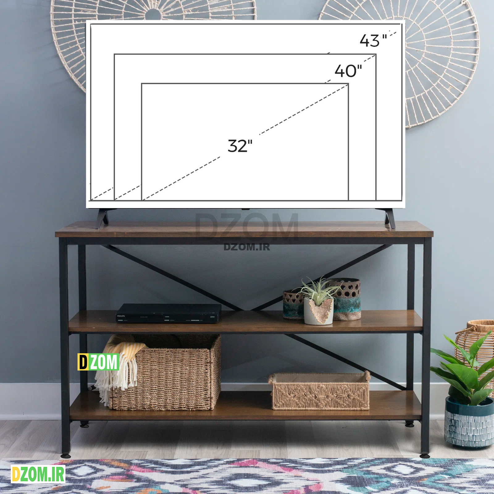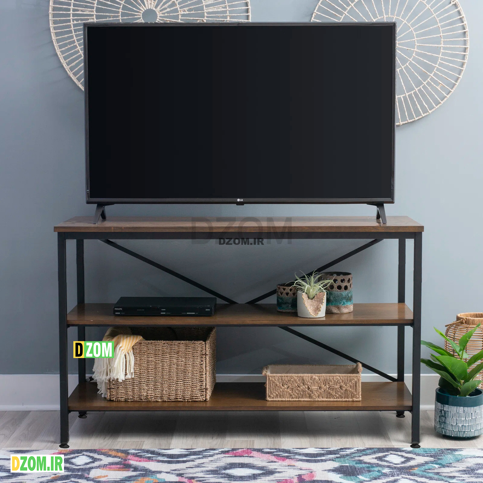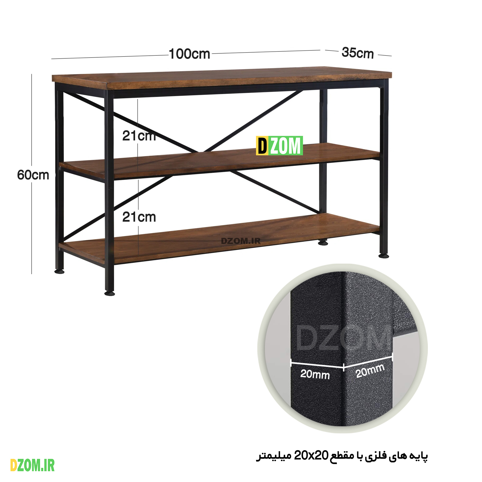 میز تلویزیون دیزم DZom مدل TVS-38F05-100BRN محصولی سبک، شیک و در عین حال جذاب و کارآمد از سری تولیدات دیزم میباشد. مشتری گرامی توجه نمایید محصولات برند دیزم (شماره ثبت 414013 اداره ثبت علائم تجاری) با کیفیت و بسته بندی اصلی تنها توسط فروشنده رسمی دیزم در دیجی کالا عرضه می گردد، لطفا از خرید کالای تقلبی از سایر فروشندگان خودداری فرمایید. برند دیزم هیچگونه نمایندگی فروش در بازارهای فیزیکی و آنلاین نداشته و محصولات خود را مستقیما از طریق سایت Dzom.ir یا شبکه های اجتماعی خود به مصرف کننده (End user) عرضه می نماید. این محصول از پایه های فلزی با مقطع 20×20 میلیمتر و رنگ رویه الکترواستاتیک با ماندگاری و دوام بالا ساخته شده است. همچنین پایه های پیچی، قابلیت تنظیم نسبت به سطح زمین را دارد تا بهترین تراز جهت جلوگیری از تکان خوردن را ایجاد نماید. صفحه محصول از جنس MDF درجه یک برجسته طرح چوب و به رنگ قهوه ای می باشد. این محصول با طول 100cm، عرض 35cm و ارتفاع 60cm عرضه می شود. به این نکته توجه شود که تنوع رنگ انتخابی کالا تنها مربوط به رنگ پایه های فلزی میباشد و محصول به صورت کاملا مونتاژ شده و آماده استفاده برای مشتریان ارسال می گردد.