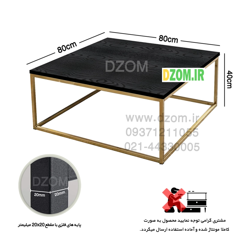 میز جلو مبلی اداری دیزم DZom مدل OF_L100_80_B محصولی سبک، شیک و در عین حال جذاب و کارآمد از سری تولیدات دیزم میباشد. مشتری گرامی توجه نمایید برند دیزم (شماره ثبت 414013 اداره ثبت علائم تجاری) هیچگونه نمایندگی فروش در بازارهای فیزیکی و آنلاین نداشته و محصولات خود را با کیفیت و بسته بندی اصلی، مستقیما از طریق سایت Dzom.ir یا شبکه های اجتماعی خود به مصرف کننده (End User) عرضه می نماید. لطفا از خرید کالای تقلبی از سایر فروشندگان خودداری فرمایید. این میز از پایه های فلزی با مقطع 20×20 میلیمتر و رنگ رویه الکترواستاتیک با ماندگاری و دوام بالا ساخته شده است و دارای پایه های لاستیکی می باشد. صفحه میز از جنس MDF درجه یک برجسته طرح چوب و به رنگ مشکی می باشد. این محصول با طول 80cm، عرض 80cm و ارتفاع 40cm عرضه می شود. به این نکته توجه شود که تنوع رنگ انتخابی کالا تنها مربوط به رنگ پایه های فلزی میباشد و محصول به صورت کاملا مونتاژ شده و آماده استفاده برای مشتریان ارسال می گردد.