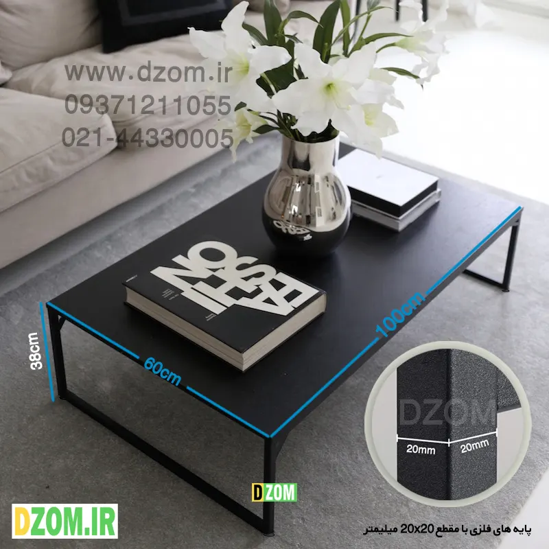 میز جلومبلی دیزم DZom مدل CO_78B99_100B محصولی سبک، شیک و در عین حال جذاب و کارآمد از سری تولیدات دیزم میباشد. مشتری گرامی توجه نمایید برند دیزم (شماره ثبت 414013 اداره ثبت علائم تجاری) هیچگونه نمایندگی فروش در بازارهای فیزیکی و آنلاین نداشته و محصولات خود را با کیفیت و بسته بندی اصلی، مستقیما از طریق سایت Dzom.ir یا شبکه های اجتماعی خود به مصرف کننده (End User) عرضه می نماید. لطفا از خرید کالای تقلبی از سایر فروشندگان خودداری فرمایید. این میز از پایه های فلزی با مقطع 20×20 میلیمتر و رنگ رویه الکترواستاتیک با ماندگاری و دوام بالا ساخته شده است. همچنین پایه های پیچی، قابلیت تنظیم نسبت به سطح زمین را دارد تا بهترین تراز جهت جلوگیری از تکان خوردن را ایجاد نماید. صفحه میز از جنس MDF درجه یک برجسته طرح چوب به رنگ مشکی می باشد. این محصول با طول 100cm، عرض 60cm و ارتفاع 38cm عرضه می شود. به این نکته توجه شود که تنوع رنگ انتخابی کالا تنها مربوط به رنگ پایه های فلزی میباشد و محصول به صورت کاملا مونتاژ شده و آماده استفاده برای مشتریان ارسال می گردد.