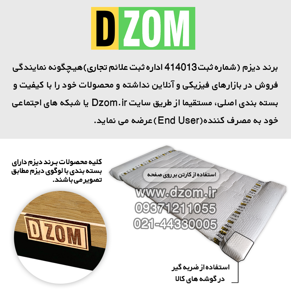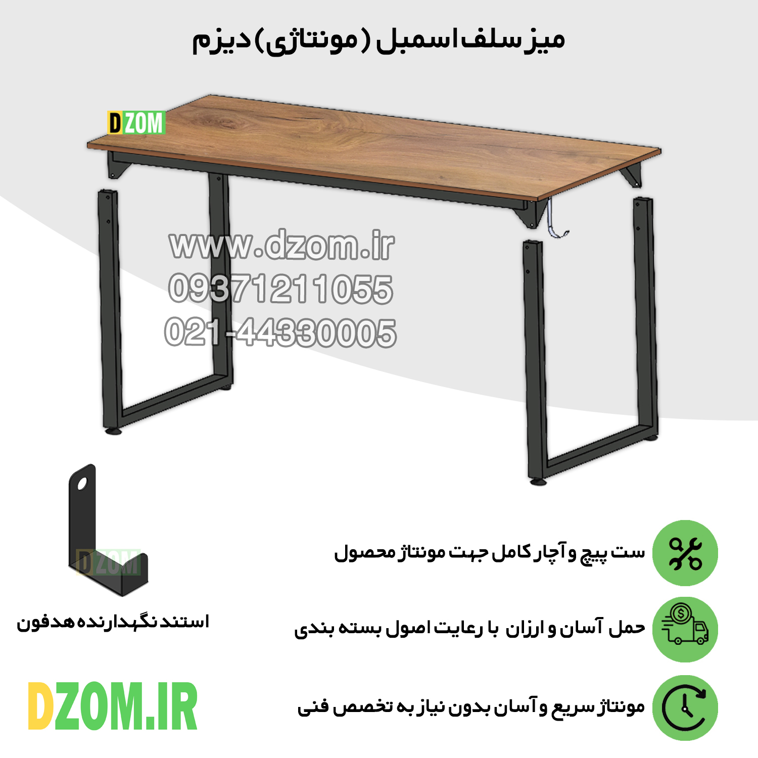 میز مدیریت دیزم DZom مدل مونتاژی TLD_asm_150×60_LIGHT محصولی مونتاژی، سبک، شیک و در عین حال جذاب و کارآمد از سری تولیدات دیزم میباشد. مشتری گرامی توجه نمایید برند دیزم (شماره ثبت 414013 اداره ثبت علائم تجاری) هیچگونه نمایندگی فروش در بازارهای فیزیکی و آنلاین نداشته و محصولات خود را با کیفیت و بسته بندی اصلی، مستقیما از طریق سایت Dzom.ir یا شبکه های اجتماعی خود به مصرف کننده (End User) عرضه می نماید. لطفا از خرید کالای تقلبی از سایر فروشندگان خودداری فرمایید. این محصول بصورت سلف اسمبل (مونتاژی) تولید شده است. این میز حمل و نقل آسان و هزینه حمل مقرون به صرفه ای دارد. این میز از پایه های فلزی با مقطع 50×30 میلیمتر و رنگ رویه الکترواستاتیک با ماندگاری و دوام بالا ساخته شده است. همچنین پایه های پیچی، قابلیت تنظیم نسبت به سطح زمین را دارد تا بهترین تراز جهت جلوگیری از تکان خوردن را ایجاد نماید. صفحه میز از جنس MDF درجه یک برجسته طرح چوب به رنگ قهوه ای روشن می باشد. این محصول با طول 150cm، عرض 60cm و ارتفاع 75cm عرضه می شود. به این نکته توجه شود که تنوع رنگ انتخابی کالا تنها مربوط به رنگ پایه های فلزی میباشد.