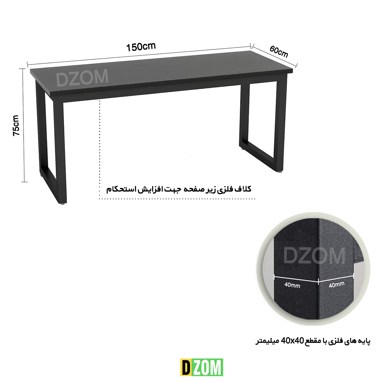 میز دیزم DZom مدل CD_A100_150_B محصولی سبک، شیک و در عین حال جذاب و کارآمد از سری تولیدات دیزم میباشد. مشتری گرامی توجه نمایید محصولات برند دیزم (شماره ثبت 414013 اداره ثبت علائم تجاری) با کیفیت و بسته بندی اصلی تنها توسط فروشنده رسمی دیزم در دیجی کالا عرضه می گردد، لطفا از خرید کالای تقلبی از سایر فروشندگان خودداری فرمایید. برند دیزم هیچگونه نمایندگی فروش در بازارهای فیزیکی و آنلاین نداشته و محصولات خود را مستقیما از طریق سایت Dzom.ir یا شبکه های اجتماعی خود به مصرف کننده (End User) عرضه می نماید. این میز که قابلیت استفاده به عنوان میز تحریر، میز کامپیوتر، میز جلسه، میز کار و حتی به عنوان یک میز اداری را دارد، از پایه های فلزی با مقطع 40×40 میلیمتر و رنگ رویه الکترواستاتیک با ماندگاری و دوام بالا ساخته شده است. همچنین پایه های میز، قابلیت تنظیم نسبت به سطح زمین را دارد تا بهترین تراز جهت جلوگیری از تکان خوردن میز را ایجاد نماید. صفحه میز از جنس ام دی اف درجه یک برجسته طرح چوب و به رنگ مشکی می باشد. میز با طول: 150cm عرض 60cm و ارتفاع 75cm عرضه می گردد. به این نکته توجه شود که تنوع رنگ انتخابی کالا تنها مربوط به رنگ پایه های فلزی میباشد. همچنین توجه نمایید محصولات دیزم به صورت کاملا مونتاژ شده و آماده استفاده برای مشتریان ارسال می گردد.