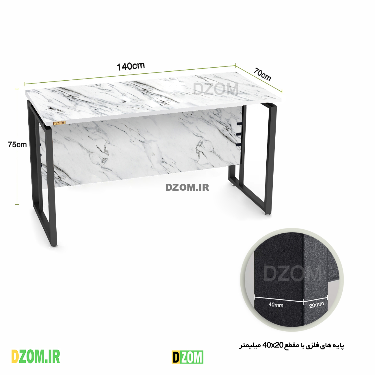 میز مدیریت دیزم DZom مدل TLD-62H17-140SW محصولی سبک، شیک و در عین حال جذاب و کارآمد از سری تولیدات دیزم میباشد. مشتری گرامی توجه نمایید محصولات برند دیزم (شماره ثبت 414013 اداره ثبت علائم تجاری) با کیفیت و بسته بندی اصلی تنها توسط فروشنده رسمی دیزم در دیجی کالا عرضه می گردد، لطفا از خرید کالای تقلبی از سایر فروشندگان خودداری فرمایید. برند دیزم هیچگونه نمایندگی فروش در بازارهای فیزیکی و آنلاین نداشته و محصولات خود را مستقیما از طریق سایت Dzom.ir یا شبکه های اجتماعی خود به مصرف کننده (End User) عرضه می نماید. این محصول از پایه های فلزی با مقطع 20×40 میلیمتر و رنگ رویه الکترواستاتیک با ماندگاری و دوام بالا ساخته شده است. همچنین پایه های پیچی، قابلیت تنظیم نسبت به سطح زمین را دارد تا بهترین تراز جهت جلوگیری از تکان خوردن را ایجاد نماید. صفحه میز از جنس MDF درجه یک طرح سنگ به رنگ سفید می باشد. این محصول با طول 140cm، عرض 70cm و ارتفاع 75cm عرضه می شود. به این نکته توجه شود که تنوع رنگ انتخابی کالا تنها مربوط به رنگ پایه های فلزی میباشد و محصول به صورت کاملا مونتاژ شده و آماده استفاده برای مشتریان ارسال می گردد.