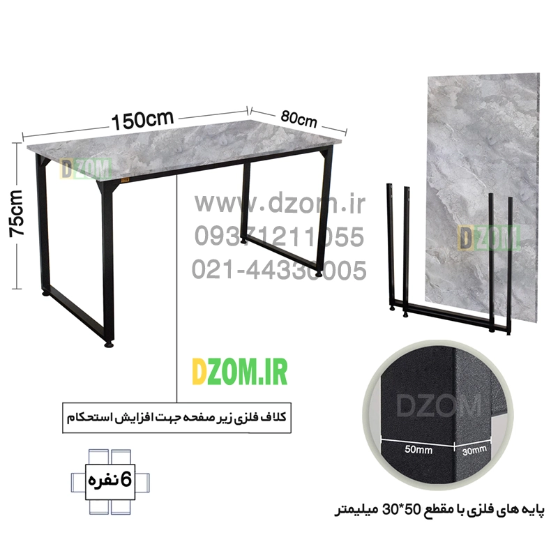 میز ناهارخوری دیزم DZom مدل مونتاژی LNC_asm_150×80_GR محصولی مونتاژی، سبک، شیک و در عین حال جذاب و کارآمد از سری تولیدات دیزم میباشد. مشتری گرامی توجه نمایید برند دیزم (شماره ثبت 414013 اداره ثبت علائم تجاری) هیچگونه نمایندگی فروش در بازارهای فیزیکی و آنلاین نداشته و محصولات خود را با کیفیت و بسته بندی اصلی، مستقیما از طریق سایت Dzom.ir یا شبکه های اجتماعی خود به مصرف کننده (End User) عرضه می نماید. لطفا از خرید کالای تقلبی از سایر فروشندگان خودداری فرمایید. این محصول بصورت سلف اسمبل (مونتاژی) تولید شده است. این میز حمل و نقل آسان و هزینه حمل مقرون به صرفه ای دارد. این میز از پایه های فلزی با مقطع 50×30 میلیمتر و رنگ رویه الکترواستاتیک با ماندگاری و دوام بالا ساخته شده است. همچنین پایه های پیچی، قابلیت تنظیم نسبت به سطح زمین را دارد تا بهترین تراز جهت جلوگیری از تکان خوردن را ایجاد نماید. صفحه میز از جنس MDF درجه یک به رنگ طوسی می باشد. این محصول با طول 150cm، عرض 80cm و ارتفاع 75cm عرضه می شود. به این نکته توجه شود که تنوع رنگ انتخابی کالا تنها مربوط به رنگ پایه های فلزی میباشد.