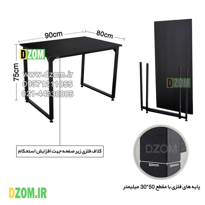 میز ناهارخوری دیزم DZom مدل مونتاژی LNC_asm_90×80_B محصولی مونتاژی، سبک، شیک و در عین حال جذاب و کارآمد از سری تولیدات دیزم میباشد. مشتری گرامی توجه نمایید برند دیزم (شماره ثبت 414013 اداره ثبت علائم تجاری) هیچگونه نمایندگی فروش در بازارهای فیزیکی و آنلاین نداشته و محصولات خود را با کیفیت و بسته بندی اصلی، مستقیما از طریق سایت Dzom.ir یا شبکه های اجتماعی خود به مصرف کننده (End User) عرضه می نماید. لطفا از خرید کالای تقلبی از سایر فروشندگان خودداری فرمایید. این محصول بصورت سلف اسمبل (مونتاژی) تولید شده است. این میز حمل و نقل آسان و هزینه حمل مقرون به صرفه ای دارد. این میز از پایه های فلزی با مقطع 50×30 میلیمتر و رنگ رویه الکترواستاتیک با ماندگاری و دوام بالا ساخته شده است. همچنین پایه های پیچی، قابلیت تنظیم نسبت به سطح زمین را دارد تا بهترین تراز جهت جلوگیری از تکان خوردن را ایجاد نماید. صفحه میز از جنس MDF درجه یک برجسته طرح چوب به رنگ مشکی می باشد. این محصول با طول 90cm، عرض 80cm و ارتفاع 75cm عرضه می شود. به این نکته توجه شود که تنوع رنگ انتخابی کالا تنها مربوط به رنگ پایه های فلزی میباشد.