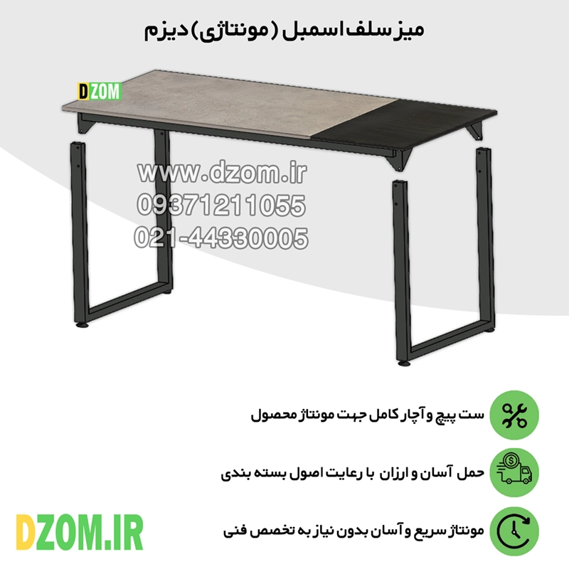 میز ناهارخوری دیزم DZom مدل مونتاژی LNC_asm_150×80_Di_BAGR محصولی مونتاژی، سبک، شیک و در عین حال جذاب و کارآمد از سری تولیدات دیزم میباشد. این محصول بصورت سلف اسمبل (مونتاژی) تولید شده است. مشتری گرامی توجه نمایید برند دیزم (شماره ثبت 414013 اداره ثبت علائم تجاری) هیچگونه نمایندگی فروش در بازارهای فیزیکی و آنلاین نداشته و محصولات خود را با کیفیت و بسته بندی اصلی، مستقیما از طریق سایت Dzom.ir یا شبکه های اجتماعی خود به مصرف کننده (End User) عرضه می نماید. لطفا از خرید کالای تقلبی از سایر فروشندگان خودداری فرمایید. این میز حمل و نقل آسان و هزینه حمل مقرون به صرفه ای دارد. این میز از پایه های فلزی با مقطع 50×30 میلیمتر و رنگ رویه الکترواستاتیک با ماندگاری و دوام بالا ساخته شده است. همچنین پایه های پیچی، قابلیت تنظیم نسبت به سطح زمین را دارد تا بهترین تراز جهت جلوگیری از تکان خوردن را ایجاد نماید. صفحه میز ترکیبی از MDF درجه یک برجسته طرح چوب به رنگ مشکی و MDF درجه یک به رنگ طوسی می باشد. این محصول با طول 150cm، عرض 80cm و ارتفاع 75cm عرضه می شود. به این نکته توجه شود که تنوع رنگ انتخابی کالا تنها مربوط به رنگ پایه های فلزی میباشد.