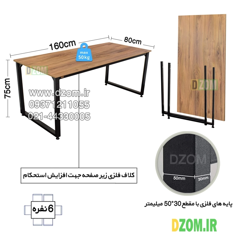 میز ناهار خوری دیزم DZom مدل مونتاژی LNC_asm_160×80_LIGHT محصولی مونتاژی، سبک، شیک و در عین حال جذاب و کارآمد از سری تولیدات دیزم میباشد.مشتری گرامی توجه نمایید برند دیزم (شماره ثبت 414013 اداره ثبت علائم تجاری) هیچگونه نمایندگی فروش در بازارهای فیزیکی و آنلاین نداشته و محصولات خود را با کیفیت و بسته بندی اصلی، مستقیما از طریق سایت Dzom.ir یا شبکه های اجتماعی خود به مصرف کننده (End User) عرضه می نماید. لطفا از خرید کالای تقلبی از سایر فروشندگان خودداری فرمایید. این محصول بصورت سلف اسمبل (مونتاژی) تولید شده است. این میز حمل و نقل آسان و هزینه حمل مقرون به صرفه ای دارد. این میز از پایه های فلزی با مقطع 50×30 میلیمتر و رنگ رویه الکترواستاتیک با ماندگاری و دوام بالا ساخته شده است. همچنین پایه های پیچی، قابلیت تنظیم نسبت به سطح زمین را دارد تا بهترین تراز جهت جلوگیری از تکان خوردن را ایجاد نماید. صفحه میز از جنس MDF درجه یک برجسته طرح چوب به رنگ قهوه ای روشن می باشد. این محصول با طول 160cm، عرض 80cm و ارتفاع 75cm عرضه می شود. به این نکته توجه شود که تنوع رنگ انتخابی کالا تنها مربوط به رنگ پایه های فلزی میباشد.