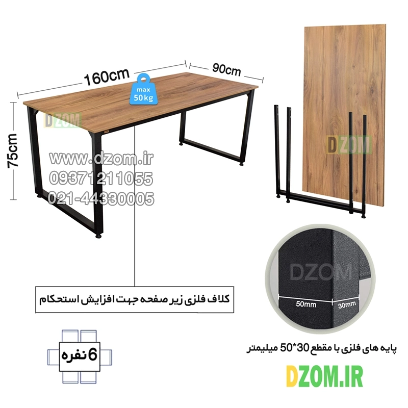 میز ناهارخوری دیزم DZom مدل مونتاژی LNC_asm_160×90_LIGHT محصولی مونتاژی، سبک، شیک و در عین حال جذاب و کارآمد از سری تولیدات دیزم میباشد. مشتری گرامی توجه نمایید برند دیزم (شماره ثبت 414013 اداره ثبت علائم تجاری) هیچگونه نمایندگی فروش در بازارهای فیزیکی و آنلاین نداشته و محصولات خود را با کیفیت و بسته بندی اصلی، مستقیما از طریق سایت Dzom.ir یا شبکه های اجتماعی خود به مصرف کننده (End User) عرضه می نماید. لطفا از خرید کالای تقلبی از سایر فروشندگان خودداری فرمایید. این محصول بصورت سلف اسمبل (مونتاژی) تولید شده است. این میز حمل و نقل آسان و هزینه حمل مقرون به صرفه ای دارد. این میز از پایه های فلزی با مقطع 50×30 میلیمتر و رنگ رویه الکترواستاتیک با ماندگاری و دوام بالا ساخته شده است. همچنین پایه های پیچی، قابلیت تنظیم نسبت به سطح زمین را دارد تا بهترین تراز جهت جلوگیری از تکان خوردن را ایجاد نماید. صفحه میز از جنس MDF درجه یک برجسته طرح چوب به رنگ قهوه ای روشن می باشد. این محصول با طول 160cm، عرض 90cm و ارتفاع 75cm عرضه می شود. به این نکته توجه شود که تنوع رنگ انتخابی کالا تنها مربوط به رنگ پایه های فلزی میباشد.