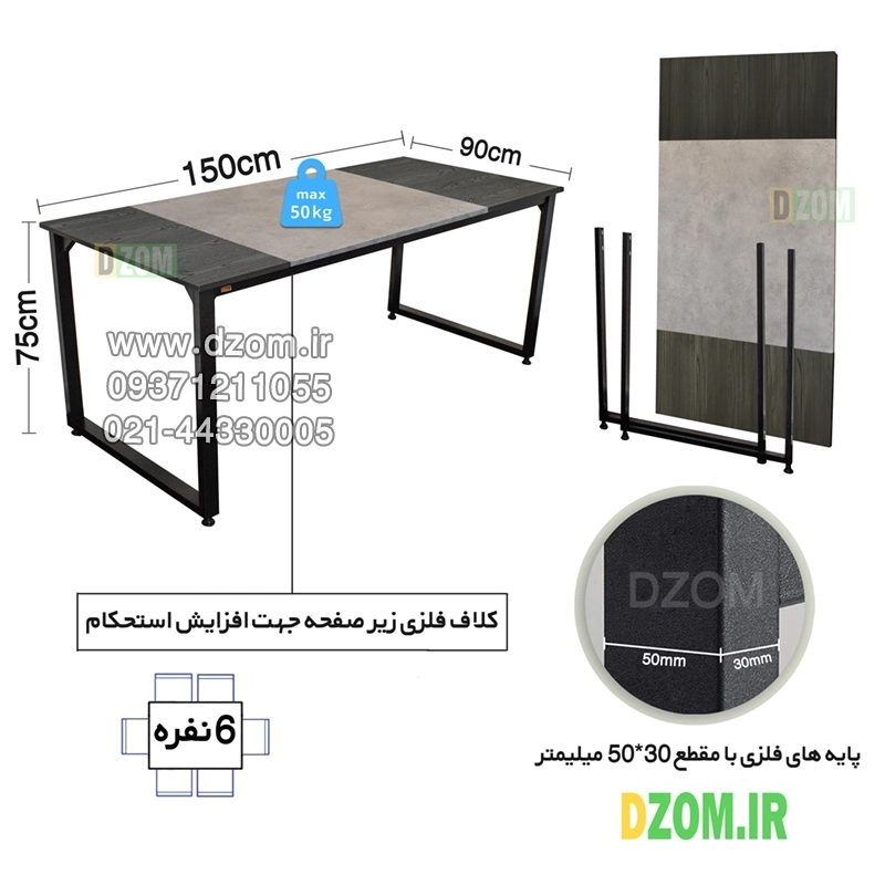 میز ناهارخوری شش نفره دیزم مدل مونتاژی LNC_asm_150×90_B (بدون صندلی)