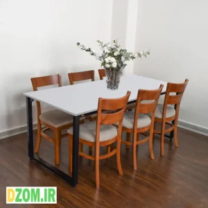 مشتری گرامی لطفا توجه نمایید صندلی ها در تصویر صرفا جهت نمایش بوده و شامل فروش نمی باشند. فروش فقط شامل میز است.