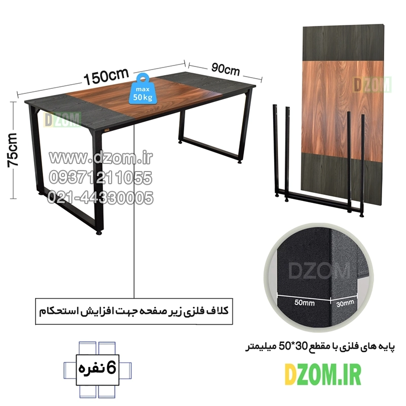 میز ناهارخوری شش نفره دیزم مدل مونتاژی LNC_asm_150×90_BRN (بدون صندلی)