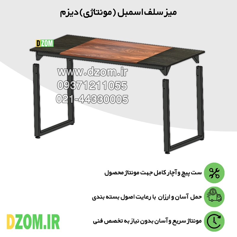 میز ناهارخوری دیزم DZom مدل مونتاژی LNC_asm_150×90_Tri_BABRN محصولی مونتاژی، سبک، شیک و در عین حال جذاب و کارآمد از سری تولیدات دیزم میباشد. این محصول بصورت سلف اسمبل (مونتاژی) تولید شده است. مشتری گرامی توجه نمایید برند دیزم (شماره ثبت 414013 اداره ثبت علائم تجاری) هیچگونه نمایندگی فروش در بازارهای فیزیکی و آنلاین نداشته و محصولات خود را با کیفیت و بسته بندی اصلی، مستقیما از طریق سایت Dzom.ir یا شبکه های اجتماعی خود به مصرف کننده (End User) عرضه می نماید. لطفا از خرید کالای تقلبی از سایر فروشندگان خودداری فرمایید. این میز حمل و نقل آسان و هزینه حمل مقرون به صرفه ای دارد. این میز از پایه های فلزی با مقطع 50×30 میلیمتر و رنگ رویه الکترواستاتیک با ماندگاری و دوام بالا ساخته شده است. همچنین پایه های پیچی، قابلیت تنظیم نسبت به سطح زمین را دارد تا بهترین تراز جهت جلوگیری از تکان خوردن را ایجاد نماید. صفحه میز از جنس MDF درجه یک برجسته طرح چوب با ترکیبی از دو رنگ مشکی و قهوه ای می باشد. این محصول با طول 150cm، عرض 90cm و ارتفاع 75cm عرضه می شود. به این نکته توجه شود که تنوع رنگ انتخابی کالا تنها مربوط به رنگ پایه های فلزی میباشد.