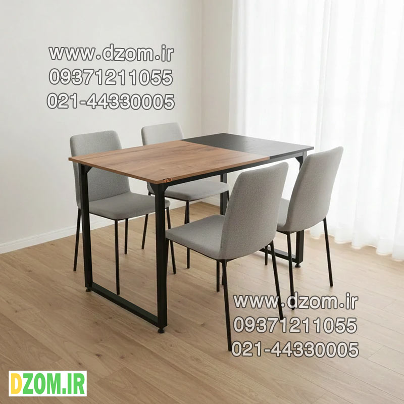 مشتری گرامی لطفا توجه نمایید صندلی ها در تصویر صرفا جهت نمایش بوده و شامل فروش نمی باشند. فروش فقط شامل میز است.