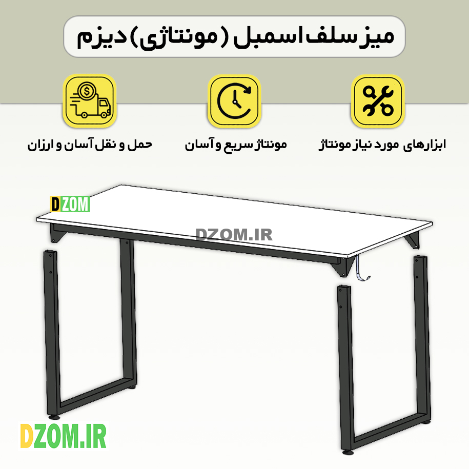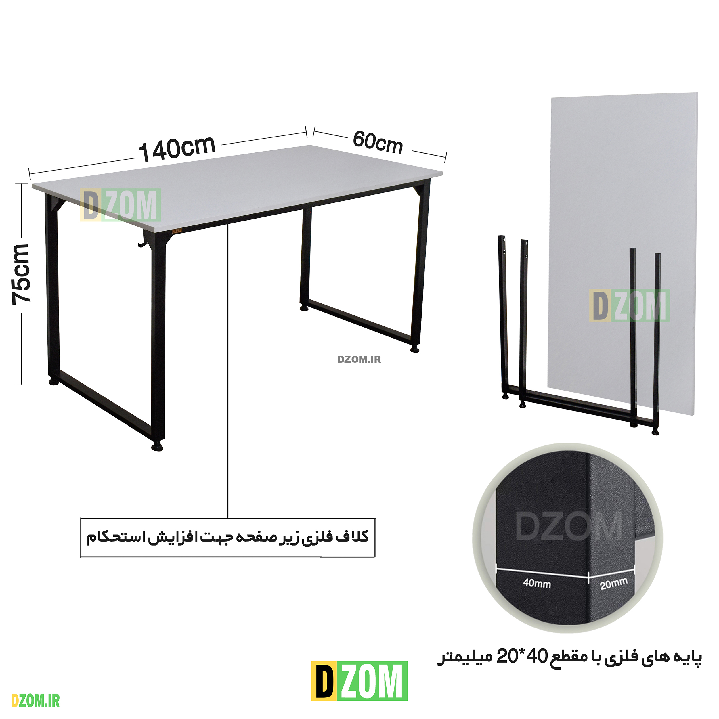 میز کامپیوتر دیزم DZom مدل مونتاژی TLD_asm_140×60_W محصولی مونتاژی، سبک، شیک و در عین حال جذاب و کارآمد از سری تولیدات دیزم میباشد. مشتری گرامی توجه نمایید محصولات برند دیزم (شماره ثبت 414013 اداره ثبت علائم تجاری) با کیفیت و بسته بندی اصلی تنها توسط فروشنده رسمی دیزم در دیجی کالا عرضه می گردد، لطفا از خرید کالای تقلبی از سایر فروشندگان خودداری فرمایید. برند دیزم هیچگونه نمایندگی فروش در بازارهای فیزیکی و آنلاین نداشته و محصولات خود را مستقیما از طریق سایت Dzom.ir یا شبکه های اجتماعی خود به مصرف کننده (End User) عرضه می نماید. این محصول بصورت سلف اسمبل (مونتاژی) تولید شده است. ویژگی ممتاز این میز حمل و نقل آسان آن است. سلف اسمبل بودن محصول باعث شده است تا هزینه حمل و نقل آن بسیار مناسب و مقرون به صرفه شود. این میز از پایه های فلزی با مقطع 40×20 میلیمتر و رنگ رویه الکترواستاتیک با ماندگاری و دوام بالا ساخته شده است. همچنین پایه های پیچی، قابلیت تنظیم نسبت به سطح زمین را دارد تا بهترین تراز جهت جلوگیری از تکان خوردن را ایجاد نماید. صفحه میز از جنس MDF درجه یک برجسته طرح چوب به رنگ سفید می باشد. این محصول با طول 140cm، عرض 60cm و ارتفاع 75cm عرضه می شود. به این نکته توجه شود که تنوع رنگ انتخابی کالا تنها مربوط به رنگ پایه های فلزی میباشد.