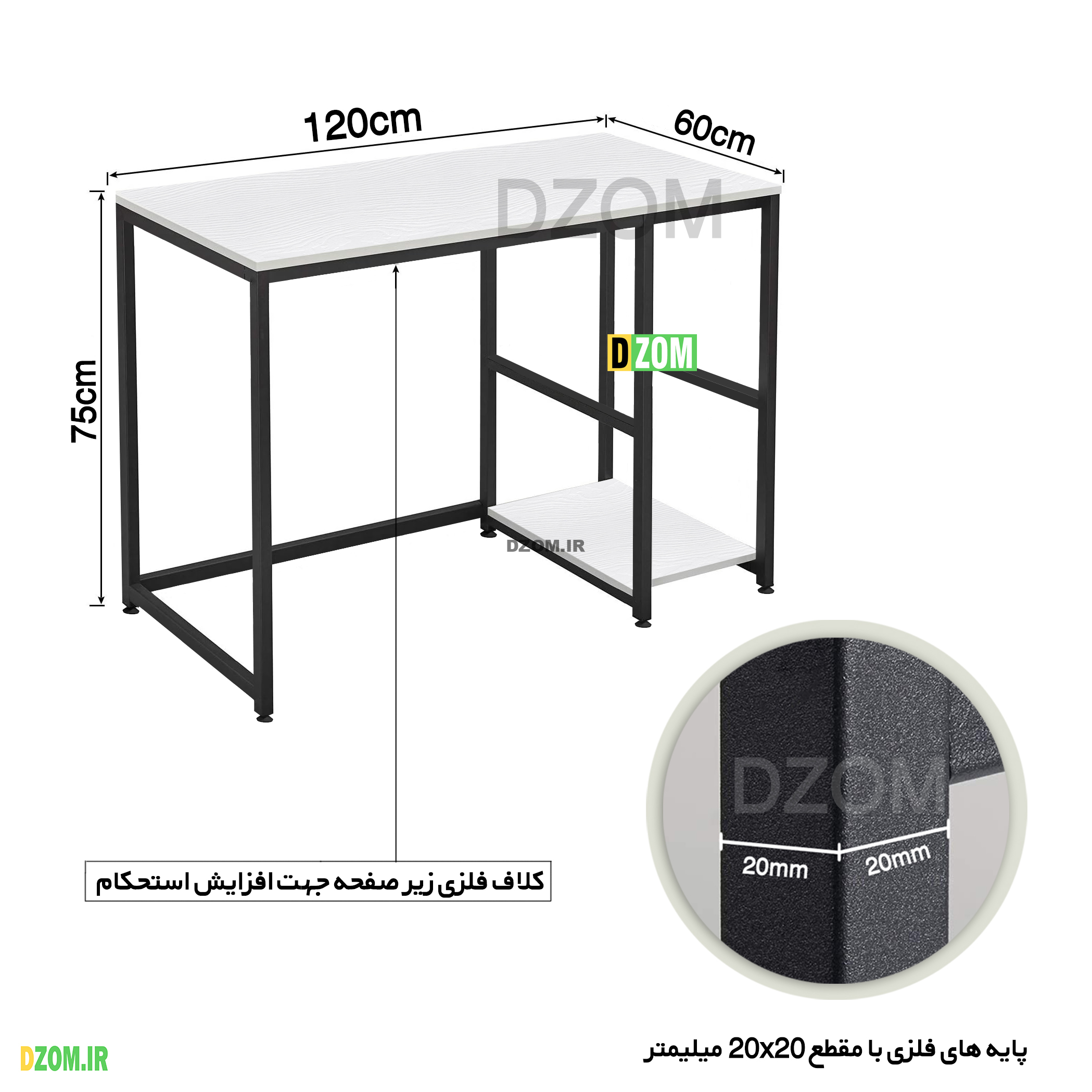میز کامپیوتر دیزم DZom مدل CD_31U47_120WONE محصولی سبک، شیک و در عین حال جذاب و کارآمد از سری تولیدات دیزم میباشد. مشتری گرامی توجه نمایید محصولات برند دیزم (شماره ثبت 414013 اداره ثبت علائم تجاری) با کیفیت و بسته بندی اصلی تنها توسط فروشنده رسمی دیزم در دیجی کالا عرضه می گردد، لطفا از خرید کالای تقلبی از سایر فروشندگان خودداری فرمایید. برند دیزم هیچگونه نمایندگی فروش در بازارهای فیزیکی و آنلاین نداشته و محصولات خود را مستقیما از طریق سایت Dzom.ir یا شبکه های اجتماعی خود به مصرف کننده (End User) عرضه می نماید. این میز از پایه های فلزی با مقطع 20×20 میلیمتر و رنگ رویه الکترواستاتیک با ماندگاری و دوام بالا ساخته شده است. همچنین پایه های پیچی، قابلیت تنظیم نسبت به سطح زمین را دارد تا بهترین تراز جهت جلوگیری از تکان خوردن را ایجاد نماید. صفحه میز از جنس MDF درجه یک برجسته طرح چوب به رنگ سفید می باشد. این محصول با طول 120cm، عرض 60cm و ارتفاع 75cm عرضه می شود. به این نکته توجه شود که تنوع رنگ انتخابی کالا تنها مربوط به رنگ پایه های فلزی میباشد و محصول به صورت کاملا مونتاژ شده و آماده استفاده برای مشتریان ارسال می گردد.