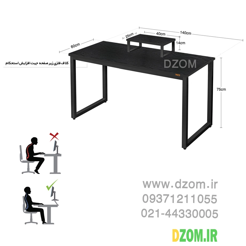 میز دیزم DZom مدل CD_LI100_140_B محصولی سبک، شیک و در عین حال جذاب و کارآمد از سری تولیدات دیزم میباشد. مشتری گرامی توجه نمایید برند دیزم (شماره ثبت 414013 اداره ثبت علائم تجاری) هیچگونه نمایندگی فروش در بازارهای فیزیکی و آنلاین نداشته و محصولات خود را با کیفیت و بسته بندی اصلی، مستقیما از طریق سایت Dzom.ir یا شبکه های اجتماعی خود به مصرف کننده (End User) عرضه می نماید. لطفا از خرید کالای تقلبی از سایر فروشندگان خودداری فرمایید. این میز که قابلیت استفاده به عنوان میز تحریر، میز کامپیوتر، میز جلسه، میز کار و حتی به عنوان یک میز اداری را دارد، از رنگ رویه الکترواستاتیک با ماندگاری و دوام بالا ساخته شده است. همچنین پایه های پیچی، قابلیت تنظیم نسبت به سطح زمین را دارد تا بهترین تراز جهت جلوگیری از تکان خوردن را ایجاد نماید. صفحه میز از جنس MDF درجه یک برجسته طرح چوب و به رنگ مشکی می باشد. این محصول با طول 140cm، عرض 60cm و ارتفاع 75cm عرضه می شود. به این نکته توجه شود که تنوع رنگ انتخابی کالا تنها مربوط به رنگ پایه های فلزی میباشد.