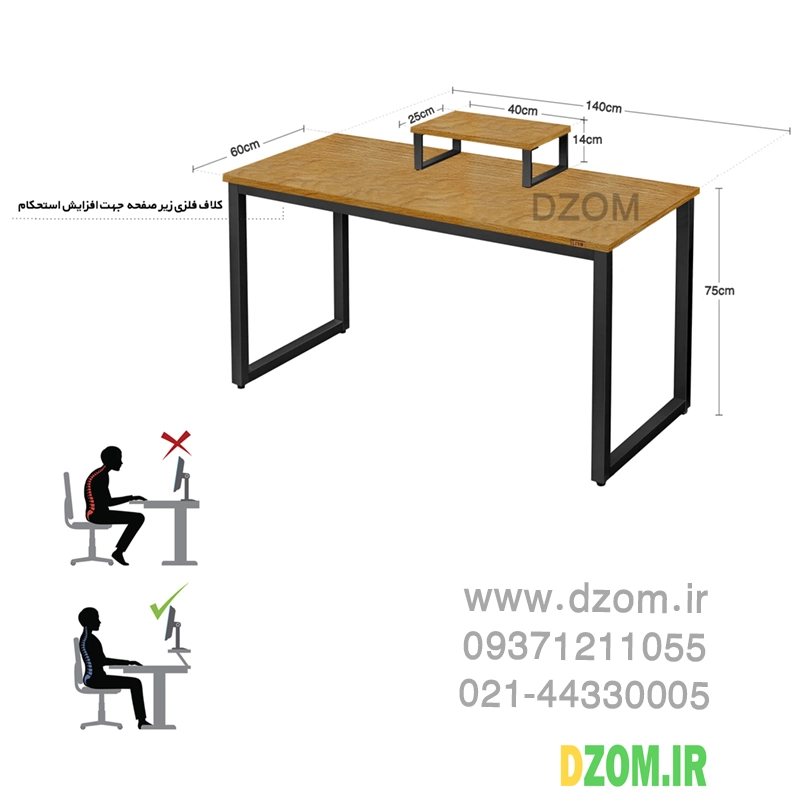 میز دیزم DZom مدل CD_LI100_140_LIGHT محصولی سبک، شیک و در عین حال جذاب و کارآمد از سری تولیدات دیزم میباشد. مشتری گرامی توجه نمایید برند دیزم (شماره ثبت 414013 اداره ثبت علائم تجاری) هیچگونه نمایندگی فروش در بازارهای فیزیکی و آنلاین نداشته و محصولات خود را با کیفیت و بسته بندی اصلی، مستقیما از طریق سایت Dzom.ir یا شبکه های اجتماعی خود به مصرف کننده (End User) عرضه می نماید. لطفا از خرید کالای تقلبی از سایر فروشندگان خودداری فرمایید. این میز که قابلیت استفاده به عنوان میز تحریر، میز کامپیوتر، میز جلسه، میز کار و حتی به عنوان یک میز اداری را دارد، از رنگ رویه الکترواستاتیک با ماندگاری و دوام بالا ساخته شده است. همچنین پایه های پیچی، قابلیت تنظیم نسبت به سطح زمین را دارد تا بهترین تراز جهت جلوگیری از تکان خوردن را ایجاد نماید. صفحه میز از جنس MDF درجه یک برجسته طرح چوب و به رنگ قهوه ای روشن می باشد. این محصول با طول 140cm، عرض 60cm و ارتفاع 75cm عرضه می شود. به این نکته توجه شود که تنوع رنگ انتخابی کالا تنها مربوط به رنگ پایه های فلزی میباشد.