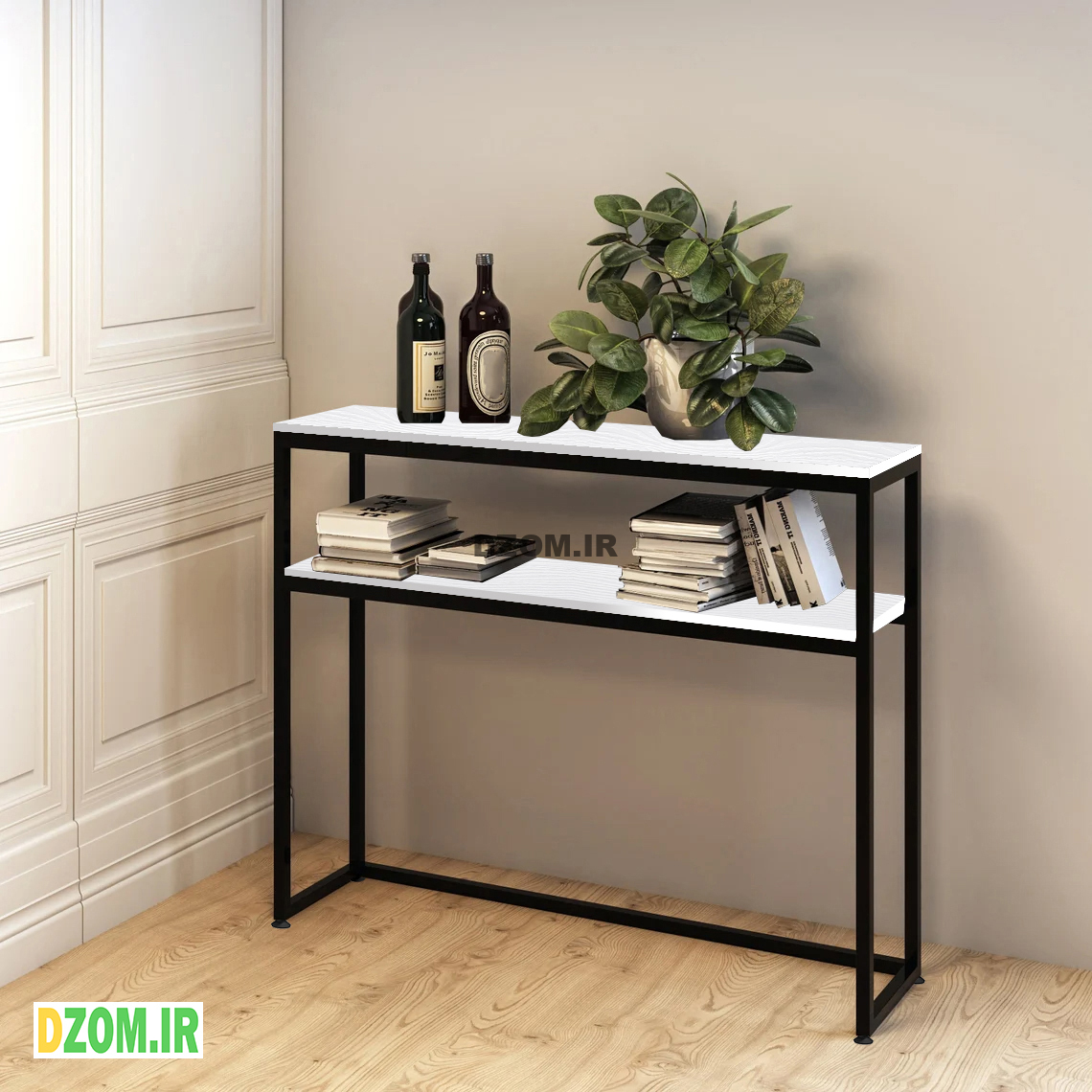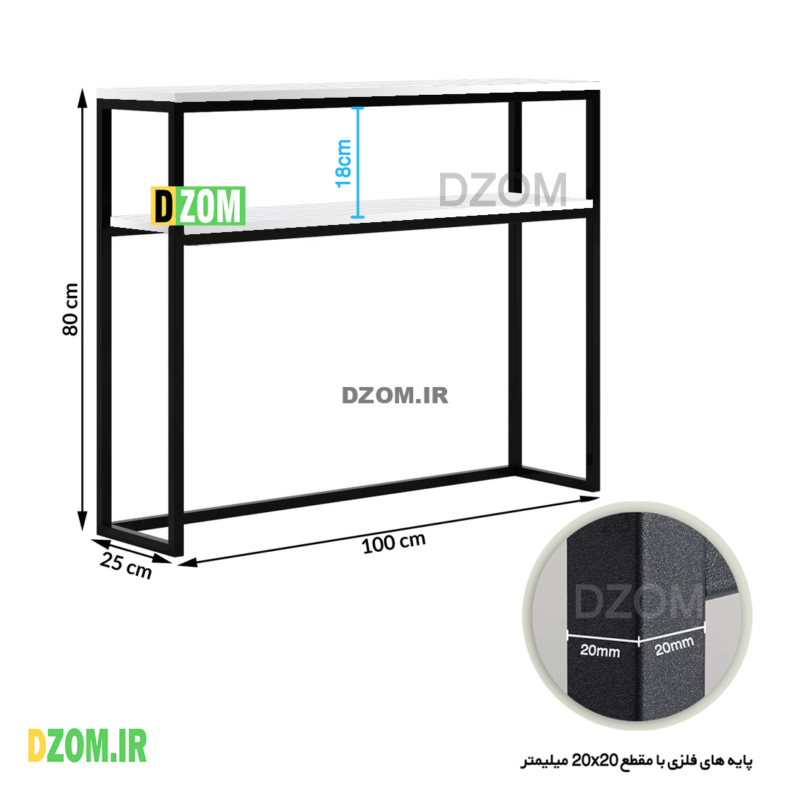 کنسول دیزم DZom مدل CNL_90A456_100_W محصولی سبک، شیک و در عین حال جذاب و کارآمد از سری تولیدات دیزم میباشد.مشتری گرامی توجه نمایید محصولات برند دیزم (شماره ثبت 414013 اداره ثبت علائم تجاری) با کیفیت و بسته بندی اصلی تنها توسط فروشنده رسمی دیزم در دیجی کالا عرضه می گردد، لطفا از خرید کالای تقلبی از سایر فروشندگان خودداری فرمایید. برند دیزم هیچگونه نمایندگی فروش در بازارهای فیزیکی و آنلاین نداشته و محصولات خود را مستقیما از طریق سایت Dzom.ir یا شبکه های اجتماعی خود به مصرف کننده (End user) عرضه می نماید. این محصول از پایه های فلزی با مقطع 20×20 میلیمتر و رنگ رویه الکترواستاتیک با ماندگاری و دوام بالا ساخته شده است. همچنین پایه های پیچی، قابلیت تنظیم نسبت به سطح زمین را دارد تا بهترین تراز جهت جلوگیری از تکان خوردن را ایجاد نماید. صفحه میز از جنس MDF درجه یک برجسته طرح چوب به رنگ سفید می باشد. این محصول با طول 100cm، عرض 25cm و ارتفاع 80cm عرضه می شود. به این نکته توجه شود که تنوع رنگ انتخابی کالا تنها مربوط به رنگ پایه های فلزی میباشد و محصول به صورت کاملا مونتاژ شده و آماده استفاده برای مشتریان ارسال می گردد.