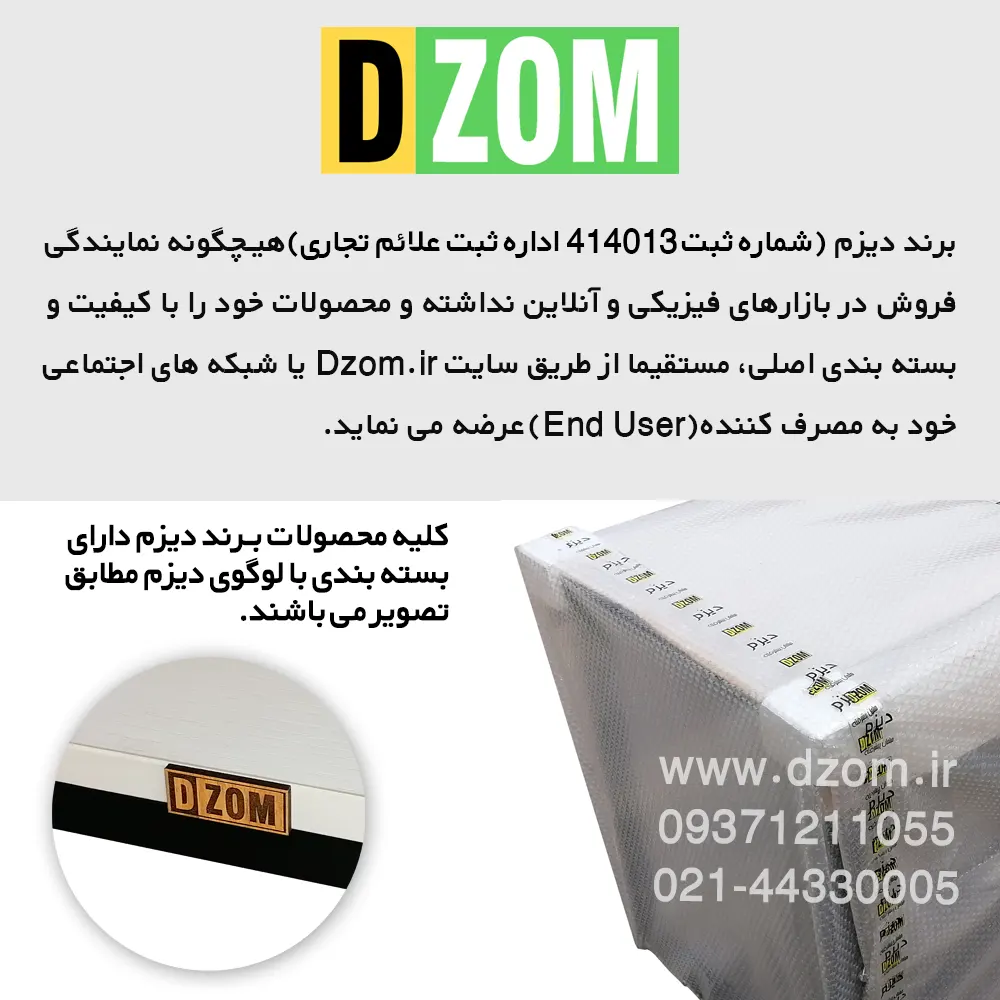 کنسول دیزم DZom مدل CNL_K100_100_W محصولی سبک، شیک و در عین حال جذاب و کارآمد از سری تولیدات دیزم میباشد. مشتری گرامی توجه نمایید برند دیزم (شماره ثبت 414013 اداره ثبت علائم تجاری) هیچگونه نمایندگی فروش در بازارهای فیزیکی و آنلاین نداشته و محصولات خود را با کیفیت و بسته بندی اصلی، مستقیما از طریق سایت Dzom.ir یا شبکه های اجتماعی خود به مصرف کننده (End User) عرضه می نماید. لطفا از خرید کالای تقلبی از سایر فروشندگان خودداری فرمایید. این محصول از پایه های فلزی با مقطع 20×20 میلیمتر و رنگ رویه الکترواستاتیک با ماندگاری و دوام بالا ساخته شده است. همچنین پایه های پیچی، قابلیت تنظیم نسبت به سطح زمین را دارد تا بهترین تراز جهت جلوگیری از تکان خوردن را ایجاد نماید. صفحه محصول از جنس MDF درجه یک برجسته طرح چوب و به رنگ سفید می باشد. این محصول با طول 100cm، عرض 30cm و ارتفاع 75cmعرضه می شود. به این نکته توجه شود که تنوع رنگ انتخابی کالا تنها مربوط به رنگ پایه های فلزی میباشد و محصول به صورت کاملا مونتاژ شده و آماده استفاده برای مشتریان ارسال می گردد