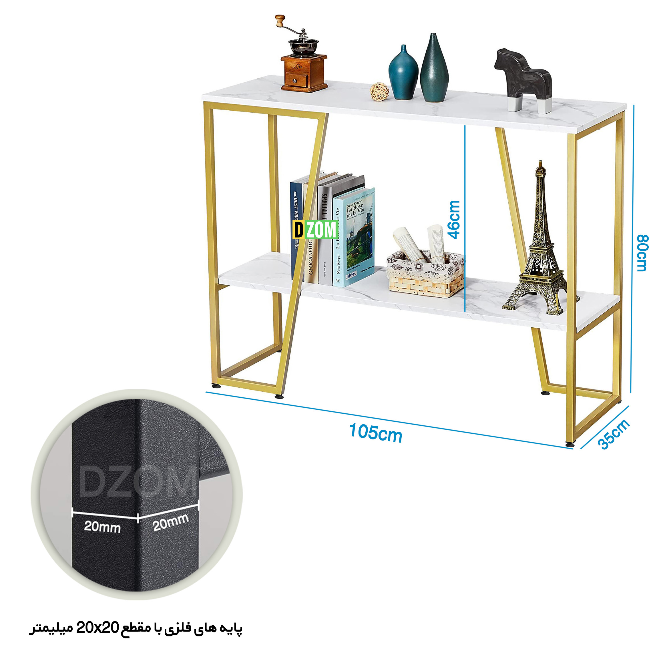 کنسول دیزم DZom مدل CNL_N100_105_SW محصولی سبک، شیک و در عین حال جذاب و کارآمد از سری تولیدات دیزم میباشد. مشتری گرامی توجه نمایید محصولات برند دیزم (شماره ثبت 414013 اداره ثبت علائم تجاری) با کیفیت و بسته بندی اصلی تنها توسط فروشنده رسمی دیزم در دیجی کالا عرضه می گردد، لطفا از خرید کالای تقلبی از سایر فروشندگان خودداری فرمایید. برند دیزم هیچگونه نمایندگی فروش در بازارهای فیزیکی و آنلاین نداشته و محصولات خود را مستقیما از طریق سایت Dzom.ir یا شبکه های اجتماعی خود به مصرف کننده (End user) عرضه می نماید. این محصول از پایه های فلزی با مقطع 20×20 میلیمتر و رنگ رویه الکترواستاتیک با ماندگاری و دوام بالا ساخته شده است. همچنین پایه های پیچی، قابلیت تنظیم نسبت به سطح زمین را دارد تا بهترین تراز جهت جلوگیری از تکان خوردن را ایجاد نماید. صفحه میز از جنس MDF درجه یک طرح سنگ به رنگ سفید می باشد. این محصول با طول 105cm، عرض 35cm و ارتفاع 80cm عرضه می شود. به این نکته توجه شود که تنوع رنگ انتخابی کالا تنها مربوط به رنگ پایه های فلزی میباشد و محصول به صورت کاملا مونتاژ شده و آماده استفاده برای مشتریان ارسال می گردد.